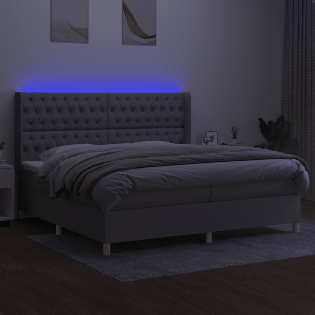 Nutze dieses Boxspringbett mit Matratze und LED für einen erholsamen Schlaf! Es wird der Mittelpunkt deines Schlafzimmers. Strapazierfähiger Stoff: Der Stoff weist eine schlichte und saubere Optik auf und ist außerdem atmungsaktiv und langlebig.Praktisches Kopfteil: Das Bett-Kopfteil ist nach Belieben höhenverstellbar. Es ist eine hervorragende Rückenlehne, während du im Bett sitzt, liest oder fern siehst.Bunter LED-Streifen: Die farbenfrohen LED-Leuchten erzeugen Verspieltheit in der Dunkelheit!Taschenfederkernmatratze: Die eingebaute Einzeltaschenfederkernmatratze zeichnet sich durch sehr hohe Qualität aus und gewährleistet gleichzeitig eine hohe Strapazierfähigkeit und Anpassungsfähigkeit. Sie absorbiert effektiv die durch das Werfen und Drehen verursachten Geräusche und Stöße.Hautfreundliche Matratzenauflage: Der Matratzenschoner ist mit einem strapazierfähigen sowie hautfreundlichen Stoffbezug versehen und fühlt sich daher weich und angenehm an. Hinweis:Aus hygienischen Gründen kann die Matratze nicht zurückgegeben werden, wenn die Verpackung entfernt oder geöffnet wurde.Nur der Teil mit dem Symbol kann geschnitten werden und nur der Teil mit dem USB funktioniert auch weiterhin.Jedes Produkt wird mit einer Montageanleitung in der Verpackung für einen einfachen Zusammenbau geliefert.Das Produkt verfügt über einen USB-Anschluss, aber die zertifizierte 5-V-USB-Stromquelle ist nicht im Lieferumfang enthalten.