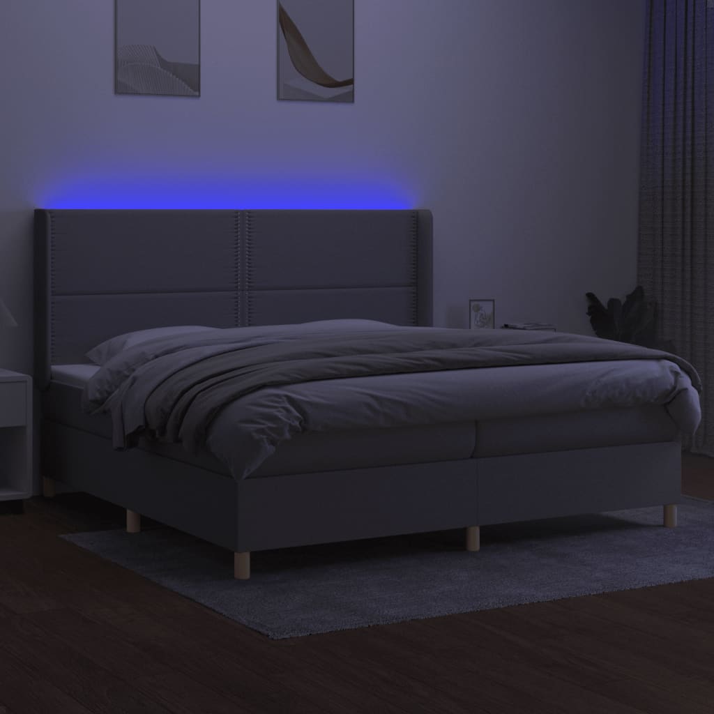 Nutze dieses Boxspringbett mit Matratze und LED für einen erholsamen Schlaf! Es wird der Mittelpunkt deines Schlafzimmers. Strapazierfähiger Stoff: Der Stoff weist eine schlichte und saubere Optik auf und ist außerdem atmungsaktiv und langlebig.Praktisches Kopfteil: Das Bett-Kopfteil ist nach Belieben höhenverstellbar. Es ist eine hervorragende Rückenlehne, während du im Bett sitzt, liest oder fern siehst.Bunter LED-Streifen: Die farbenfrohen LED-Leuchten erzeugen Verspieltheit in der Dunkelheit!Taschenfederkernmatratze: Die eingebaute Einzeltaschenfederkernmatratze zeichnet sich durch sehr hohe Qualität aus und gewährleistet gleichzeitig eine hohe Strapazierfähigkeit und Anpassungsfähigkeit. Sie absorbiert effektiv die durch das Werfen und Drehen verursachten Geräusche und Stöße.Hautfreundliche Matratzenauflage: Der Matratzenschoner ist mit einem strapazierfähigen sowie hautfreundlichen Stoffbezug versehen und fühlt sich daher weich und angenehm an. Hinweis:Aus hygienischen Gründen kann die Matratze nicht zurückgegeben werden, wenn die Verpackung entfernt oder geöffnet wurde.Nur der Teil mit dem Symbol kann geschnitten werden und nur der Teil mit dem USB funktioniert auch weiterhin.Jedes Produkt wird mit einer Montageanleitung in der Verpackung für einen einfachen Zusammenbau geliefert.Das Produkt verfügt über einen USB-Anschluss, aber die zertifizierte 5-V-USB-Stromquelle ist nicht im Lieferumfang enthalten.