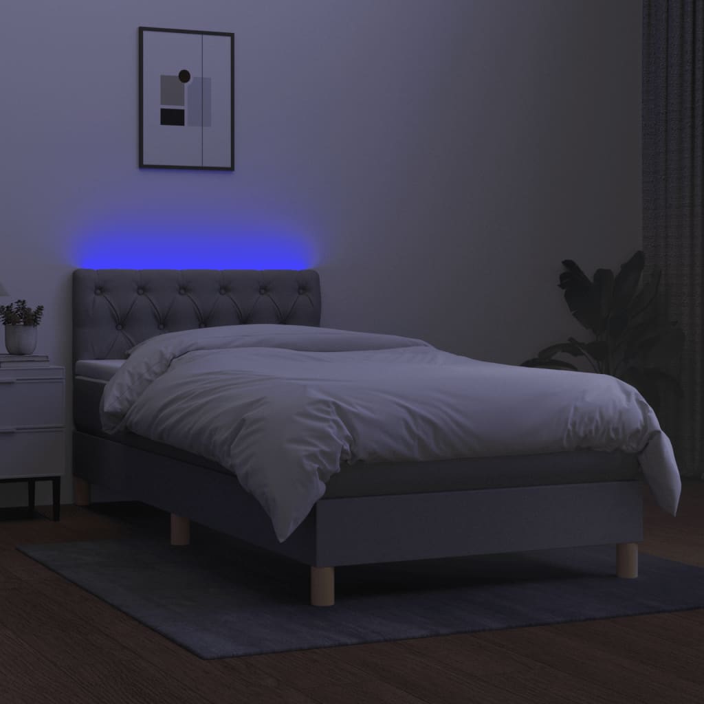 Nutze dieses Boxspringbett mit Matratze und LED für einen erholsamen Schlaf! Es wird der Mittelpunkt deines Schlafzimmers. Strapazierfähiger Stoff: Der Stoff weist eine schlichte und saubere Optik auf und ist außerdem atmungsaktiv und langlebig.Praktisches Kopfteil: Das Bett-Kopfteil ist nach Belieben höhenverstellbar. Es ist eine hervorragende Rückenlehne, während du im Bett sitzt, liest oder fern siehst.Bunter LED-Streifen: Die farbenfrohen LED-Leuchten erzeugen Verspieltheit in der Dunkelheit!Taschenfederkernmatratze: Die eingebaute Einzeltaschenfederkernmatratze zeichnet sich durch sehr hohe Qualität aus und gewährleistet gleichzeitig eine hohe Strapazierfähigkeit und Anpassungsfähigkeit. Sie absorbiert effektiv die durch das Werfen und Drehen verursachten Geräusche und Stöße.Hautfreundliche Matratzenauflage: Der Matratzenschoner ist mit einem strapazierfähigen sowie hautfreundlichen Stoffbezug versehen und fühlt sich daher weich und angenehm an. Hinweis:Aus hygienischen Gründen kann die Matratze nicht zurückgegeben werden, wenn die Verpackung entfernt oder geöffnet wurde.Jedes Produkt wird mit einer Montageanleitung in der Verpackung für einen einfachen Zusammenbau geliefert.Nur der Teil mit dem Symbol kann geschnitten werden und nur der Teil mit dem USB funktioniert auch weiterhin.Das Produkt verfügt über einen USB-Anschluss, aber die zertifizierte 5-V-USB-Stromquelle ist nicht im Lieferumfang enthalten.