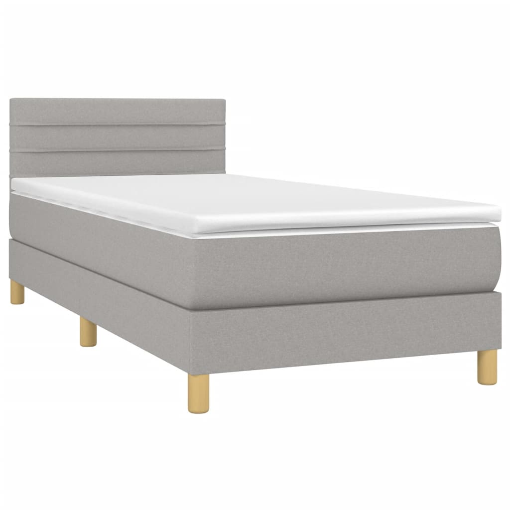 Nutze dieses Boxspringbett mit Matratze und LED für einen erholsamen Schlaf! Es wird der Mittelpunkt deines Schlafzimmers. Strapazierfähiger Stoff: Der Stoff weist eine schlichte und saubere Optik auf und ist außerdem atmungsaktiv und langlebig.Praktisches Kopfteil: Das Bett-Kopfteil ist nach Belieben höhenverstellbar. Es ist eine hervorragende Rückenlehne, während du im Bett sitzt, liest oder fern siehst.Bunter LED-Streifen: Die farbenfrohen LED-Leuchten erzeugen Verspieltheit in der Dunkelheit!Taschenfederkernmatratze: Die eingebaute Einzeltaschenfederkernmatratze zeichnet sich durch sehr hohe Qualität aus und gewährleistet gleichzeitig eine hohe Strapazierfähigkeit und Anpassungsfähigkeit. Sie absorbiert effektiv die durch das Werfen und Drehen verursachten Geräusche und Stöße.Hautfreundliche Matratzenauflage: Der Matratzenschoner ist mit einem strapazierfähigen sowie hautfreundlichen Stoffbezug versehen und fühlt sich daher weich und angenehm an. Hinweis:Aus hygienischen Gründen kann die Matratze nicht zurückgegeben werden, wenn die Verpackung entfernt oder geöffnet wurde.Jedes Produkt wird mit einer Montageanleitung in der Verpackung für einen einfachen Zusammenbau geliefert.Nur der Teil mit dem Symbol kann geschnitten werden und nur der Teil mit dem USB funktioniert auch weiterhin.Das Produkt verfügt über einen USB-Anschluss, aber die zertifizierte 5-V-USB-Stromquelle ist nicht im Lieferumfang enthalten.