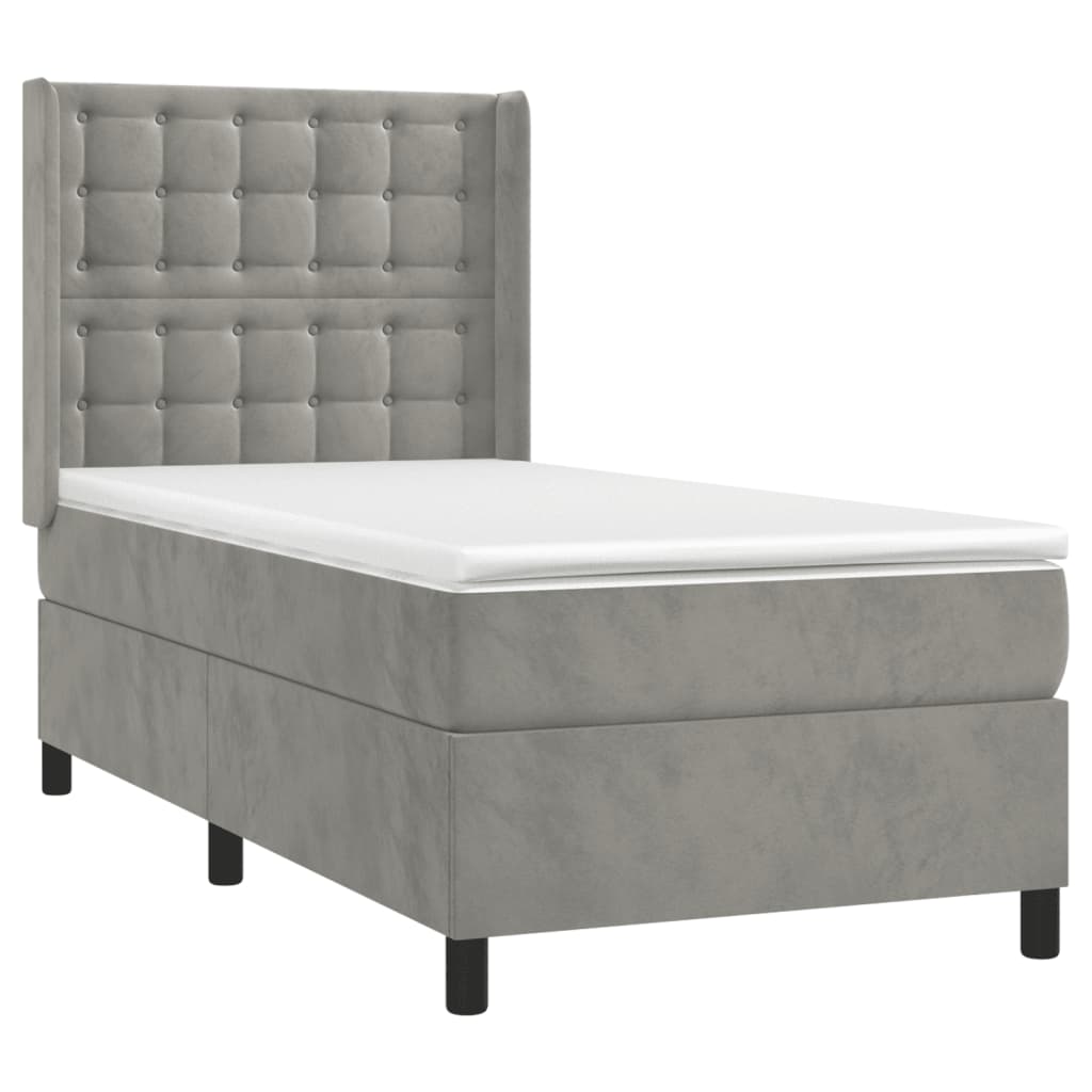 Nutze dieses Boxspringbett mit Matratze und LED für einen erholsamen Schlaf! Es wird der Mittelpunkt deines Schlafzimmers. Weicher Samt: Samt ist ein weicher, luxuriöser Stoff, der sich durch seinen dichten Flor aus gleichmäßig geschnittenen Fasern auszeichnet, die einen glatten Flor haben. Samt fühlt sich unverwechselbar weich an und ist angenehm zu berühren.Praktisches Kopfteil: Das Bett-Kopfteil ist nach Belieben höhenverstellbar. Es ist eine hervorragende Rückenlehne, während du im Bett sitzt, liest oder fern siehst.Bunter LED-Streifen: Die farbenfrohen LED-Leuchten erzeugen Verspieltheit in der Dunkelheit!Taschenfederkernmatratze: Die eingebaute Einzeltaschenfederkernmatratze zeichnet sich durch sehr hohe Qualität aus und gewährleistet gleichzeitig eine hohe Strapazierfähigkeit und Anpassungsfähigkeit. Sie absorbiert effektiv die durch das Werfen und Drehen verursachten Geräusche und Stöße.Hautfreundliche Matratzenauflage: Der Matratzenschoner ist mit einem strapazierfähigen sowie hautfreundlichen Stoffbezug versehen und fühlt sich daher weich und angenehm an. Hinweis:Aus hygienischen Gründen kann die Matratze nicht zurückgegeben werden, wenn die Verpackung entfernt oder geöffnet wurde.Nur der Teil mit dem Symbol kann geschnitten werden und nur der Teil mit dem USB funktioniert auch weiterhin.Jedes Produkt wird mit einer Montageanleitung in der Verpackung für einen einfachen Zusammenbau geliefert.Das Produkt verfügt über einen USB-Anschluss, aber die zertifizierte 5-V-USB-Stromquelle ist nicht im Lieferumfang enthalten.