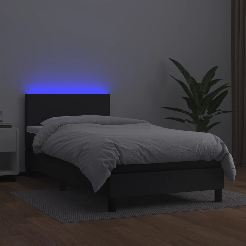 Nutze dieses Boxspringbett mit Matratze und LED für einen erholsamen Schlaf! Es wird der Mittelpunkt deines Schlafzimmers. Langlebiges Kunstleder: Hochwertiges Kunstleder ist ein äußerst langlebiges Material. Es ist schmutzabweisend und lässt sich mit einem feuchten Tuch einfach reinigen. Durch die glatte Oberfläche weist es die Schönheit von Echtleder und einen luxuriösen Look auf.Praktisches Kopfteil: Das Bett-Kopfteil ist nach Belieben höhenverstellbar. Es ist eine hervorragende Rückenlehne, während du im Bett sitzt, liest oder fern siehst.Bunter LED-Streifen: Die farbenfrohen LED-Leuchten erzeugen Verspieltheit in der Dunkelheit!Taschenfederkernmatratze: Die eingebaute Einzeltaschenfederkernmatratze zeichnet sich durch sehr hohe Qualität aus und gewährleistet gleichzeitig eine hohe Strapazierfähigkeit und Anpassungsfähigkeit. Sie absorbiert effektiv die durch das Werfen und Drehen verursachten Geräusche und Stöße.Hautfreundliche Matratzenauflage: Der Matratzenschoner ist mit einem strapazierfähigen sowie hautfreundlichen Stoffbezug versehen und fühlt sich daher weich und angenehm an. Hinweis:Aus hygienischen Gründen kann die Matratze nicht zurückgegeben werden, wenn die Verpackung entfernt oder geöffnet wurde.Jedes Produkt wird mit einer Montageanleitung in der Verpackung für einen einfachen Zusammenbau geliefert.Nur der Teil mit dem Symbol kann geschnitten werden und nur der Teil mit dem USB funktioniert auch weiterhin.Das Produkt verfügt über einen USB-Anschluss, aber die zertifizierte 5-V-USB-Stromquelle ist nicht im Lieferumfang enthalten.