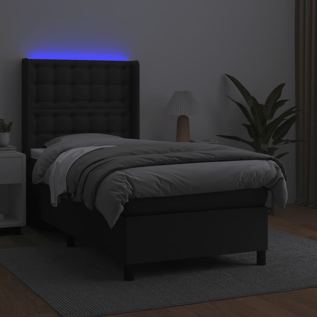 Nutze dieses Boxspringbett mit Matratze und LED für einen erholsamen Schlaf! Es wird der Mittelpunkt deines Schlafzimmers. Langlebiges Kunstleder: Hochwertiges Kunstleder ist ein äußerst langlebiges Material. Es ist schmutzabweisend und lässt sich mit einem feuchten Tuch einfach reinigen. Durch die glatte Oberfläche weist es die Schönheit von Echtleder und einen luxuriösen Look auf.Praktisches Kopfteil: Das Bett-Kopfteil ist nach Belieben höhenverstellbar. Es ist eine hervorragende Rückenlehne, während du im Bett sitzt, liest oder fern siehst.Bunter LED-Streifen: Die farbenfrohen LED-Leuchten erzeugen Verspieltheit in der Dunkelheit!Taschenfederkernmatratze: Die eingebaute Einzeltaschenfederkernmatratze zeichnet sich durch sehr hohe Qualität aus und gewährleistet gleichzeitig eine hohe Strapazierfähigkeit und Anpassungsfähigkeit. Sie absorbiert effektiv die durch das Werfen und Drehen verursachten Geräusche und Stöße.Hautfreundliche Matratzenauflage: Der Matratzenschoner ist mit einem strapazierfähigen sowie hautfreundlichen Stoffbezug versehen und fühlt sich daher weich und angenehm an. Hinweis:Aus hygienischen Gründen kann die Matratze nicht zurückgegeben werden, wenn die Verpackung entfernt oder geöffnet wurde.Nur der Teil mit dem Symbol kann geschnitten werden und nur der Teil mit dem USB funktioniert auch weiterhin.Jedes Produkt wird mit einer Montageanleitung in der Verpackung für einen einfachen Zusammenbau geliefert.Das Produkt verfügt über einen USB-Anschluss, aber die zertifizierte 5-V-USB-Stromquelle ist nicht im Lieferumfang enthalten.