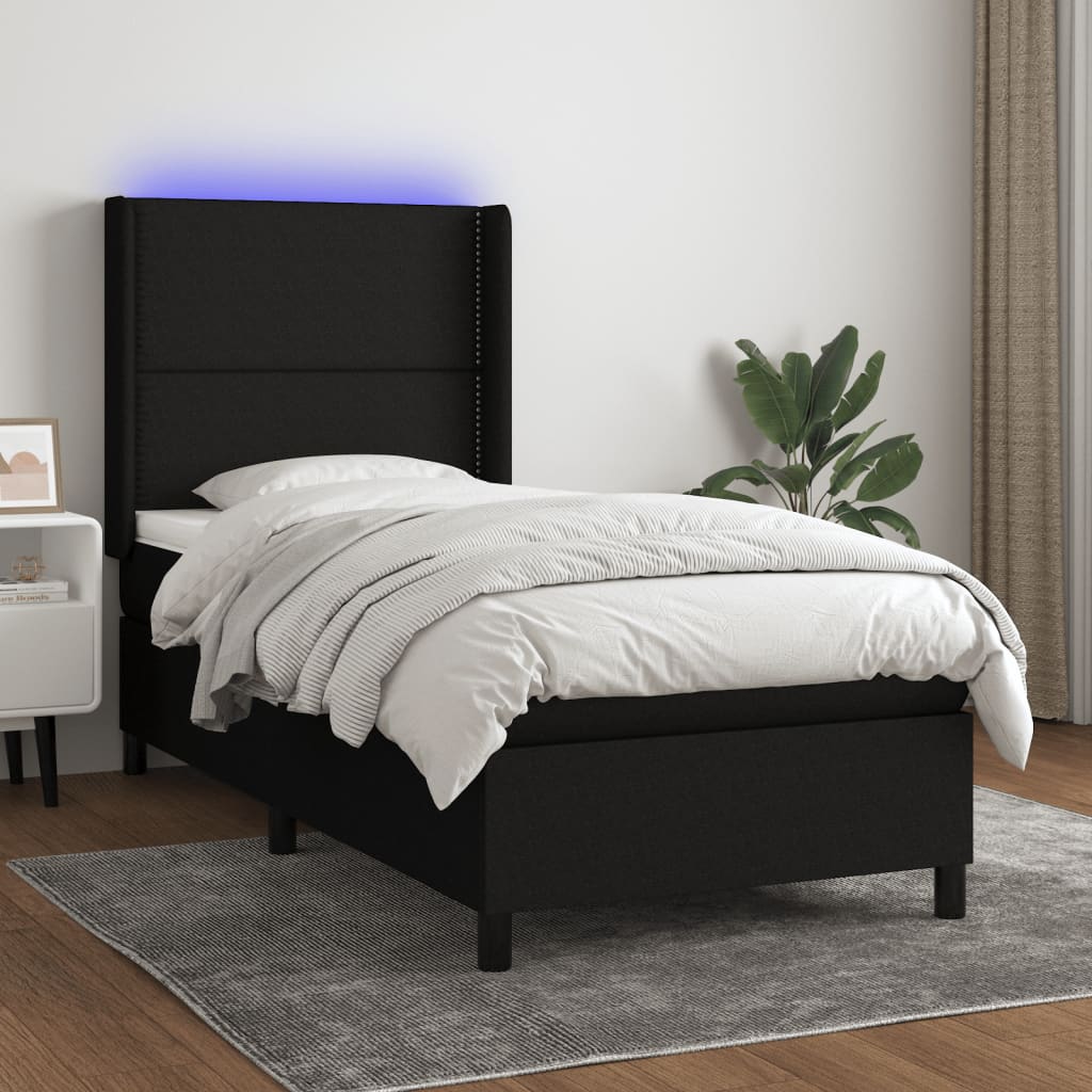 Nutze dieses Boxspringbett mit Matratze und LED für einen erholsamen Schlaf! Es wird der Mittelpunkt deines Schlafzimmers. Strapazierfähiger Stoff: Der Stoff weist eine schlichte und saubere Optik auf und ist außerdem atmungsaktiv und langlebig.Praktisches Kopfteil: Das Bett-Kopfteil ist nach Belieben höhenverstellbar. Es ist eine hervorragende Rückenlehne, während du im Bett sitzt, liest oder fern siehst.Bunter LED-Streifen: Die farbenfrohen LED-Leuchten erzeugen Verspieltheit in der Dunkelheit!Taschenfederkernmatratze: Die eingebaute Einzeltaschenfederkernmatratze zeichnet sich durch sehr hohe Qualität aus und gewährleistet gleichzeitig eine hohe Strapazierfähigkeit und Anpassungsfähigkeit. Sie absorbiert effektiv die durch das Werfen und Drehen verursachten Geräusche und Stöße.Hautfreundliche Matratzenauflage: Der Matratzenschoner ist mit einem strapazierfähigen sowie hautfreundlichen Stoffbezug versehen und fühlt sich daher weich und angenehm an. Hinweis:Aus hygienischen Gründen kann die Matratze nicht zurückgegeben werden, wenn die Verpackung entfernt oder geöffnet wurde.Nur der Teil mit dem Symbol kann geschnitten werden und nur der Teil mit dem USB funktioniert auch weiterhin.Jedes Produkt wird mit einer Montageanleitung in der Verpackung für eine einfache Montage geliefert.Das Produkt verfügt über einen USB-Anschluss, aber die zertifizierte 5-V-USB-Stromquelle ist nicht im Lieferumfang enthalten.