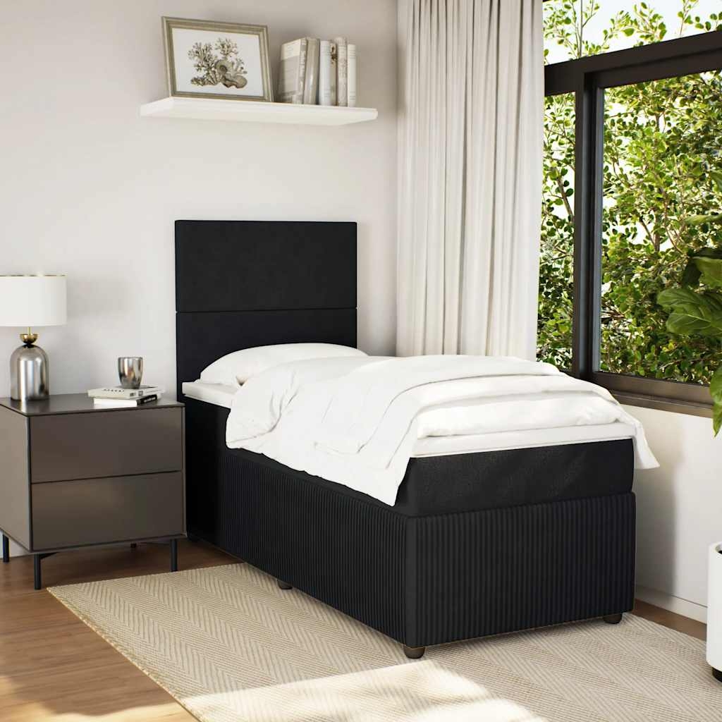 Mit diesem Boxspringbett genießt du eine erholsame Nachtruhe! Es sorgt für maximale Entspannung und einen angenehmen Schlaf. Weiches und komfortables Material: Der Samtstoff hat eine weiche und sanfte Oberfläche, die sich angenehm auf der Haut anfühlt und höchsten Komfort bietet. Taschenfederkernmatratze: Diese Matratze hat einzelne Taschenfedern, die unabhängig voneinander arbeiten. Somit bietet sie dir optimalen Halt, indem sie auf Druckstellen in jedem Bereich unabhängig reagieren. Diese Konstruktion verhindert das "Zusammenrollen" und reduziert die Bewegungsübertragung im Vergleich zu alten Federkernmatratzen. Jede Taschenfeder stützt die Körper-Druckstellen individuell. LED-Beleuchtung für ein angenehmes Ambiente: Dieses Bett verfügt über LED-Leuchten, die einfach eingestellt werden können, um eine persönliche Lichtshow zu kreieren. Du kannst die Modi, Farben und Helligkeit anpassen, um das Ambiente deines Innenraums zu verbessern. Höhenverstellbares Kopfteil: Das Kopfteil ist nach Wunsch höhenverstellbar. Komfortable Matratzenauflage: Die Auflage verbessert den Halt und den Komfort mit ihrer weichen, atmungsaktiven Oberfläche und verlängert gleichzeitig die Lebensdauer deiner Matratze. Der abnehmbare Bezug ermöglicht ein einfaches Waschen, was die Pflege der Matratze zum Kinderspiel macht. Gut zu wissen: Das Produkt verfügt über einen USB-Anschluss, für den eine zertifizierte 5V-USB-Stromquelle erforderlich ist (nicht im Lieferumfang enthalten). Aus hygienischen Gründen kann die Matratze nicht zurückgegeben werden, wenn die Verpackung entfernt oder geöffnet wurde. Nur der Teil mit dem Symbol kann geschnitten werden und nur der Teil mit dem USB funktioniert auch weiterhin.