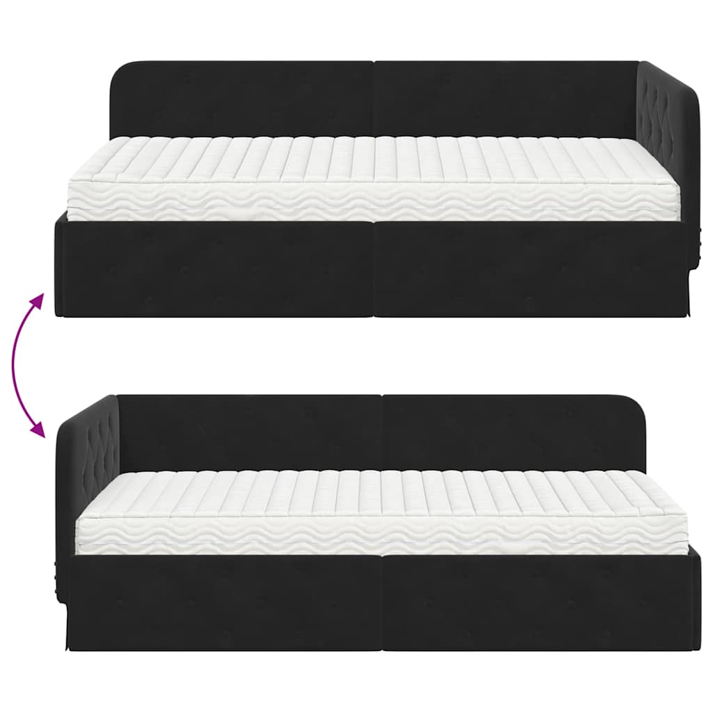 Dieses moderne Eckbettgestell bringt Funktionalität und Stil in jedes Schlafzimmer. Mit seinem schicken L-Design aus stabilen Sperrholzrahmen und weichem Samtbezug ist es ideal für Singles und Familien. Es kann sowohl als Sofa als auch als Bett genutzt werden. Der elegante Look verbunden mit den vielseitigen Einsatzmöglichkeiten macht es zum perfekten Möbel für jedes modern eingerichtete Zimmer und sorgt für mehr Komfort und Stil. Rechtwinklige Form: Die rechteckige Form von diesem Bettgestell passt perfekt in Ecken – die ideale Lösung, um den Platz im Schlafzimmer besser zu nutzen. Sein schlankes Design fügt sich wunderbar in die moderne Einrichtung ein und bietet genug Platz zum Sitzen und Schlafen. Fester Lattenrost: Das Bettgestell hat einen stabilen Lattenrost aus hochwertigem Holz oder Metall. Dieser sorgt für zuverlässigen Halt und bleibt über die Zeit in Form, damit du gut schlafen kannst, ohne dass der Stil leidet. Samtmaterial: In luxuriösen Samt gehüllt, strahlt dieses Bettgestell Eleganz und Stil aus. Die weiche Oberfläche macht es zu einem einladenden Platz zum Entspannen oder Ausruhen und passt toll zu vielen verschiedenen Einrichtungsstilen. Integrierte Schaum-Matratze: Mitgeliefert wird eine Schaum-Matratze, die für ihren Komfort und ihre Druckentlastung bekannt ist. Sie passt sich deinem Körper an und sorgt so für einen erholsamen Schlaf. Pflegehinweise: Damit der Samt immer schön aussieht, einfach regelmäßig mit einem trockenen Tuch abwischen. Verzichte auf starke Chemikalien oder nasse Reinigungsmethoden, damit der Samt seine angenehme Haptik behält.