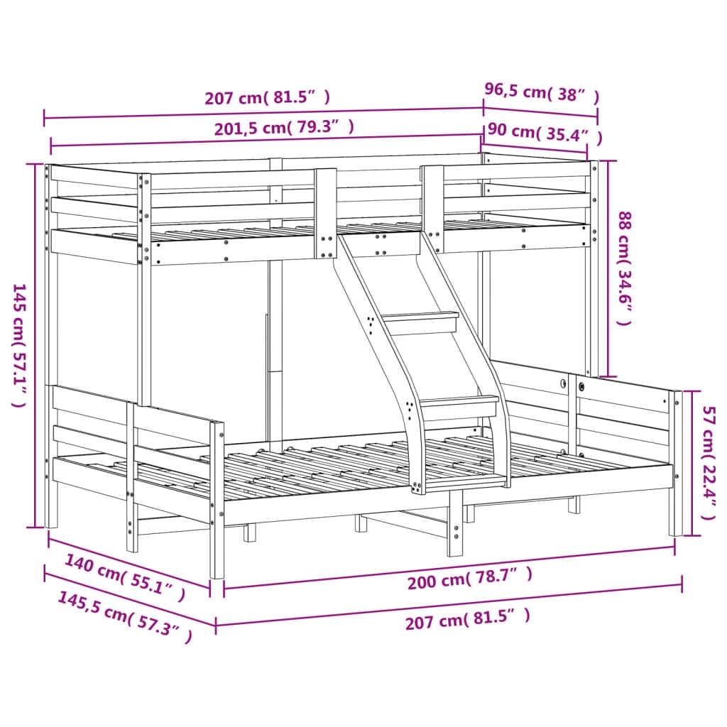 Dieses elegante und funktionelle Etagenbett aus Holz ist die perfekte Ergänzung für jedes Zimmer mit begrenztem Platzangebot. Massives Kiefernholz: Massives Kiefernholz ist ein wunderschönes Naturmaterial. Kiefernholz weist eine gerade Maserung auf und die Aststellen verleihen dem Material seine charakteristische, rustikale Optik.Sicheres Design: Das Hochbett ist auf Sicherheit ausgelegt. Es verfügt über Leitplanken, um zu verhindern, dass du während des Schlafens herausfällst.Geeignet für begrenzte Platzverhältnisse: Der Bettrahmen ist eine ausgezeichnete Wahl für jedes Zimmer mit begrenztem Platz, es bietet zwei einzelne Betten mit kompaktem Design. Gut zu wissen:Die Lieferung umfasst nur einen Bettrahmen. Die Matratze ist nicht im Lieferumfang enthalten. Die passenden Matratzen finden Sie in unserem Shop.