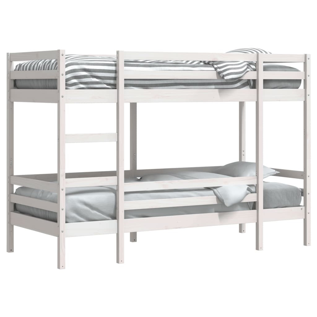 Dieses elegante und funktionelle Etagenbett aus Holz ist die perfekte Ergänzung für jedes Zimmer mit begrenztem Platzangebot. Robust und stabil: Massives Kiefernholz ist für seine Stärke und Haltbarkeit bekannt. Seine gerade Maserung und die charakteristischen Aststellen tragen zu seinem rustikalen Charme bei.Sicheres Design: Das Hochbett ist auf Sicherheit ausgelegt. Es verfügt über Leitplanken, um zu verhindern, dass du während des Schlafens herausfällst.Praktische Leiter: Die Leiter erleichtert den Einstieg ins obere Bett und bietet mehr Sicherheit und Stabilität.Geeignet für begrenzte Platzverhältnisse: Das Etagenbett aus Massivholz ist eine ausgezeichnete Wahl für jeden Raum mit begrenztem Platzangebot. Es ist eine Kombination aus zwei Einzelbetten mit kompaktem Design. Gut zu wissen:Im Lieferumfang sind nur die Bettgestelle enthalten. Die Matratzen sind nicht Teil des Angebots. Passende Matratzen findest du in unserem Shop. Achtung:Um ein Umkippen zu vermeiden, sollte dieses Produkt mit der mitgelieferten Wandhalterung gesichert werden.