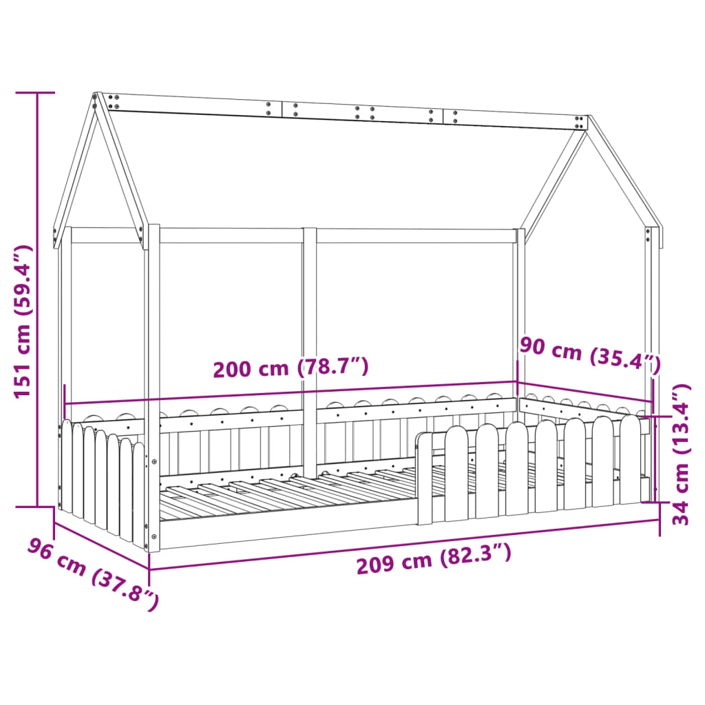 Dieses fantastische Hausbett aus Holz wird das Lieblingsbett deines Kindes sein, egal ob es gerade von seinem nächsten Abenteuer träumt oder in den Schlaf fällt.Stabiles und langlebiges Gestell: Massives Kiefernholz ist für seine Stärke und Haltbarkeit bekannt. Seine gerade Maserung und die charakteristischen Aststellen tragen zu seinem rustikalen Charme bei.Verspieltes Haus-Design: Dieses verspielte, von einem Haus inspirierte Kinderbett verwandelt die Schlafenszeit in ein tolles Abenteuer für die Kleinen. Es bietet ein gemütliches Plätzchen für die Schlafenszeit und einen spielerischen Bereich für fantasievolle Spiele.Niedriges Bodenbett: Dieser Bettrahmen ist so konzipiert, dass er niedrig liegt. Das macht es für dein Kind sicherer und zugänglicher, sich zu bewegen und selbstständig ins Bett ein- und auszusteigen.Schienen für mehr Sicherheit: Dieses Bettgestell ist mit Seitengittern ausgestattet, die verhindern, dass Kinder im Schlaf aus dem Bett fallen.Offenes Dach zum Selbermachen: Das offene Dach bietet unendliche Gestaltungsmöglichkeiten, so dass du problemlos Dekorationen aufhängen oder ein Spielzelt gestalten kannst, um einen wahrhaft magischen und persönlichen Raum zu schaffen.Gut zu wissen:Bei diesem Bett ist keine Matratze im Lieferumfang enthalten. Wir bieten jedoch eine große Auswahl an Matratzen an. Du kannst in unserem Shop nach einer passenden Matratze suchen.