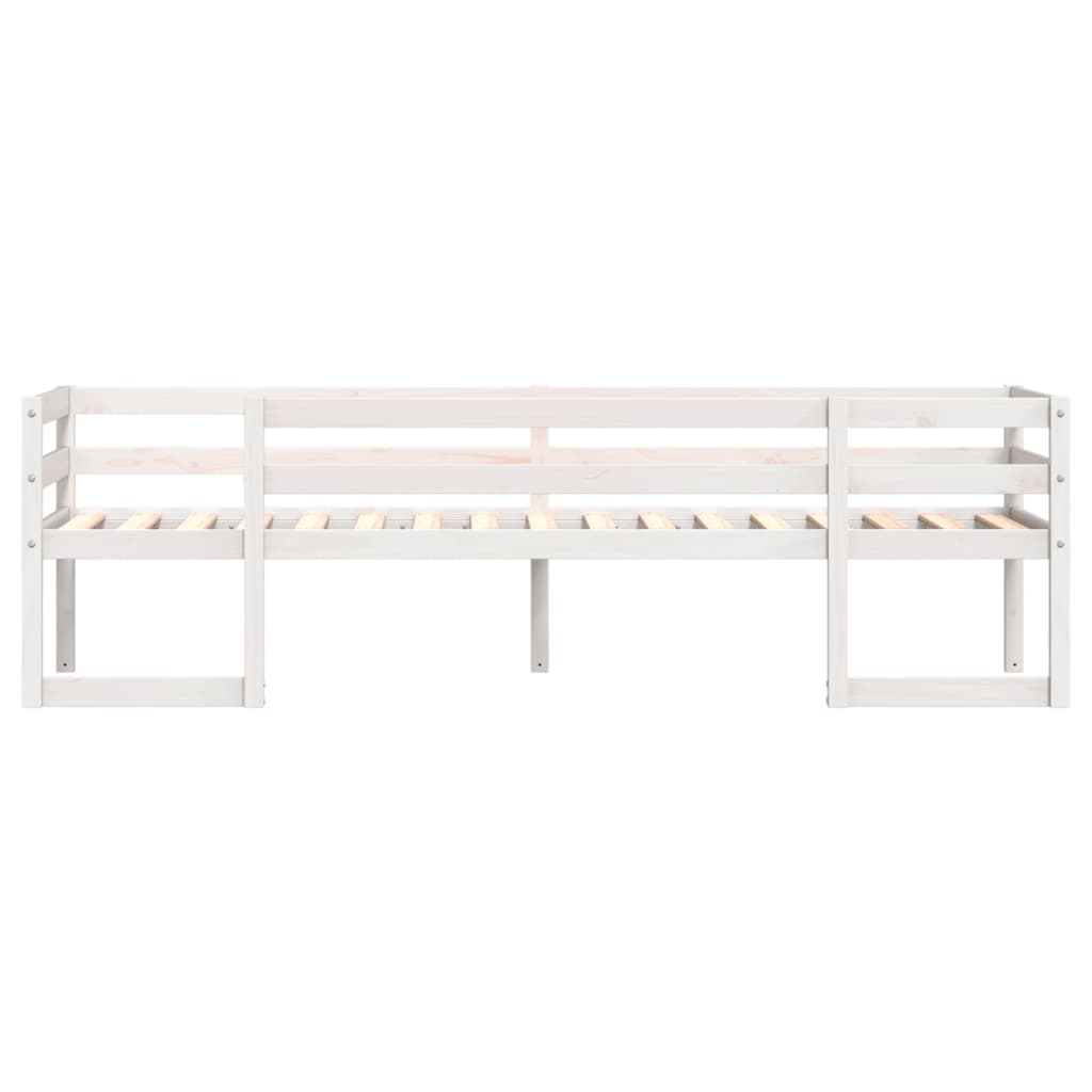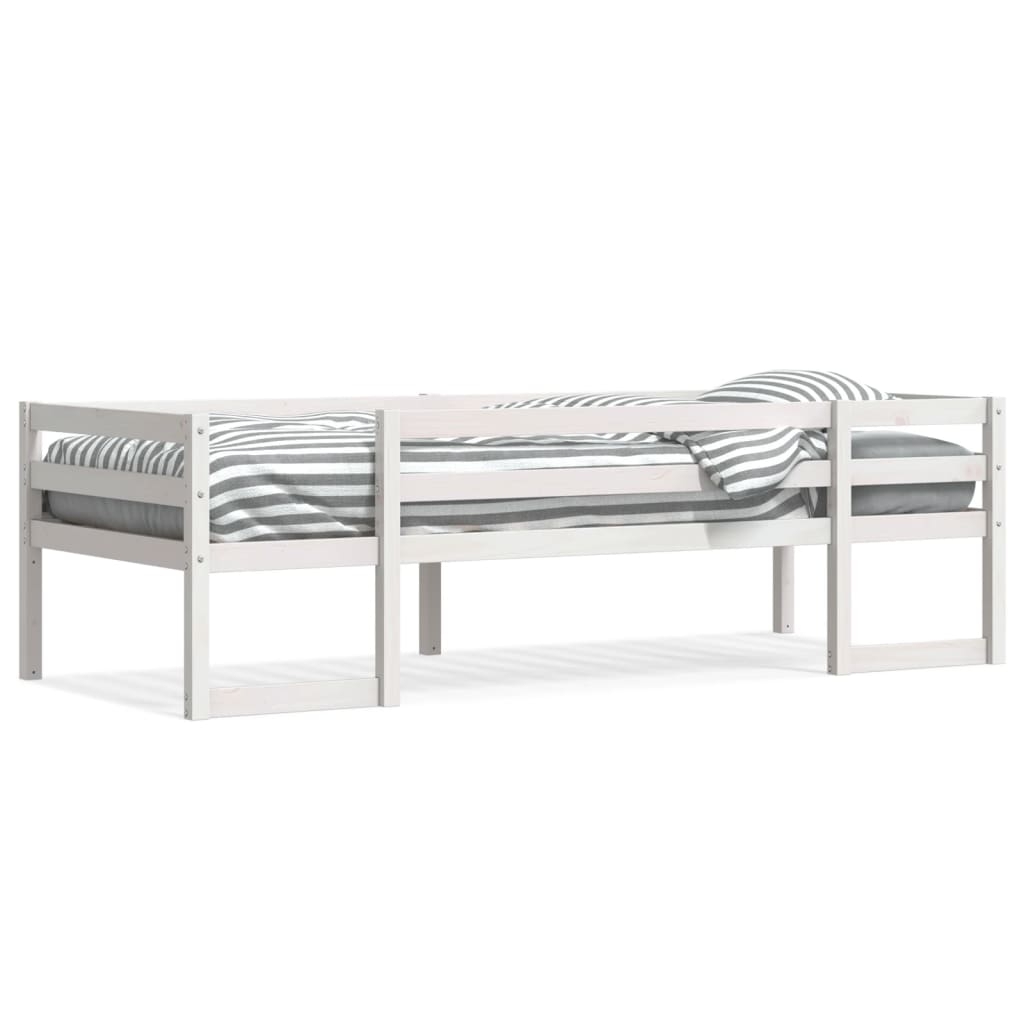 In diesem Kinderbett aus Holz genießt dein Kleiner eine erholsame Nachtruhe. Mit seinem eleganten und zeitlosen Design ist das Bett die perfekte Wahl für Kinder! Stabiles und langlebiges Gestell: Massives Kiefernholz ist für seine Stärke und Haltbarkeit bekannt. Seine gerade Maserung und die charakteristischen Aststellen tragen zu seinem rustikalen Charme bei.Robuste Latten: Die Sperrholzlatten sorgen für eine gute Gewichtsverteilung und auch dafür, dass die Matratze bei jeder Bewegung Ihres Körpers während des Schlafes an Ort und Stelle bleibt.Rausfallschutz: Das Kleinkindbett ist an allen 4 Seiten mit Rausfallschutz ausgestattet, damit dein Kind ohne Angst vor dem Herunterfallen schlafen kann.Volle Raumausnutzung: Dieses Massivholzbett für Kinder bietet unterhalb reichlich Platz für verschiedene Gegenstände oder spielerische Aktivitäten. Dieser Bereich kann zum Stapeln von Aufbewahrungsboxen und zum Aufbewahren von großem Spielzeug genutzt werden.Hohe Kompatibilität: Mit seinen klaren Linien und seinem eleganten Design passt das Kinderbett in jedes Kinderzimmer. Gut zu wissen:Im Lieferumfang sind nur die Bettgestelle enthalten. Die Matratzen sind nicht Teil des Angebots. Passende Matratzen findest du in unserem Shop. Achtung:Um ein Umkippen zu vermeiden, sollte dieses Produkt mit der mitgelieferten Wandhalterung gesichert werden.