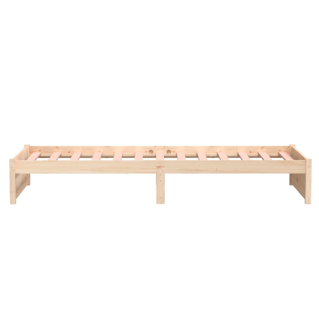 Mit diesem Holzbett verleihen Sie Ihrem Schlafzimmer eine moderne Note! Es ist eine praktische und dekorative Bereicherung für jedes Schlafzimmer. Erstklassiges Massivholz: Massives Kiefernholz ist ein wunderschönes Naturmaterial. Kiefernholz weist eine gerade Maserung auf und die Aststellen verleihen dem Material seine charakteristische, rustikale Optik.Stabil: Der Holzrahmen sorgt für Robustheit und Stabilität.Robuste Latten: Die Sperrholzlatten sorgen für eine gute Gewichtsverteilung und auch dafür, dass die Matratze bei jeder Bewegung Ihres Körpers während des Schlafes an Ort und Stelle bleibt.Passende Lösung: Dieses Einzelbett ist eine großartige Lösung für kleine Räume, multifunktionale Zimmer, Einzelschläfer und ältere Kinder. Wie auch immer Sie Ihr Zimmer dekorieren möchten, dieses Einzelbett wird all Ihren Anforderungen gerecht! Hinweis:Die Lieferung umfasst nur einen Bettrahmen. Die Matratze ist nicht im Lieferumfang enthalten. Die passenden Matratzen finden Sie in unserem Shop.Dieser Bettrahmen ist für eine Matratze mit einer Größe von 90 x 200 cm geeignet.