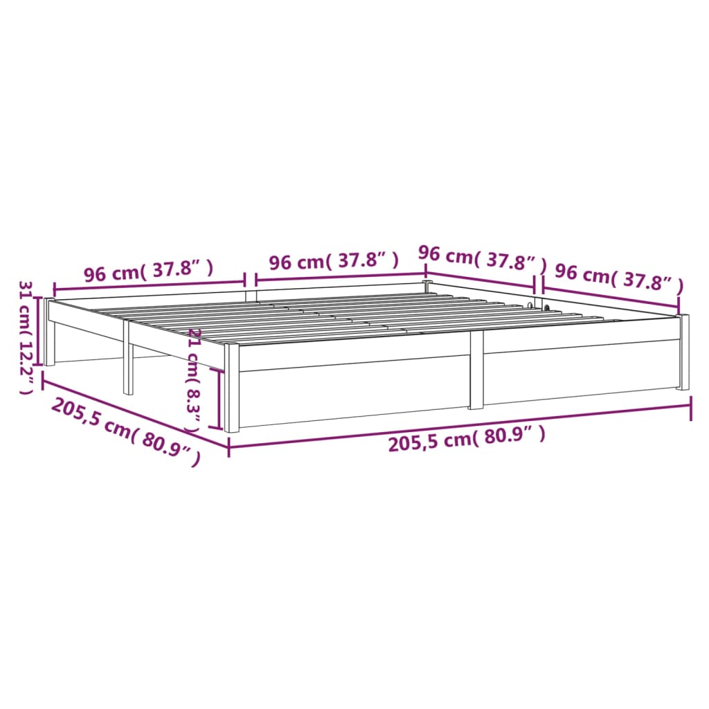 Mit diesem Holzbett verleihen Sie Ihrem Schlafzimmer eine moderne Note! Es ist eine praktische und dekorative Bereicherung für jedes Schlafzimmer. Erstklassiges Massivholz: Massives Kiefernholz ist ein wunderschönes Naturmaterial. Kiefernholz weist eine gerade Maserung auf und die Aststellen verleihen dem Material seine charakteristische, rustikale Optik.Stabil: Der Holzrahmen sorgt für Robustheit und Stabilität.Robuste Latten: Die Sperrholzlatten sorgen für eine gute Gewichtsverteilung und auch dafür, dass die Matratze bei jeder Bewegung Ihres Körpers während des Schlafes an Ort und Stelle bleibt. Hinweis:Die Lieferung umfasst nur einen Bettrahmen. Die Matratze ist nicht im Lieferumfang enthalten. Die passenden Matratzen finden Sie in unserem Shop.Dieser Bettrahmen ist für eine Matratze mit den Maßen 200x200 cm geeignet.