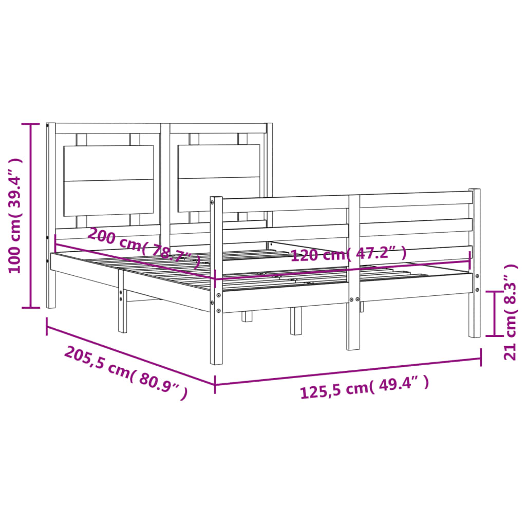 - Gesamtabmessungen des Bettes: 205,5 x 125,5 x 100 cm (L x B x H)
