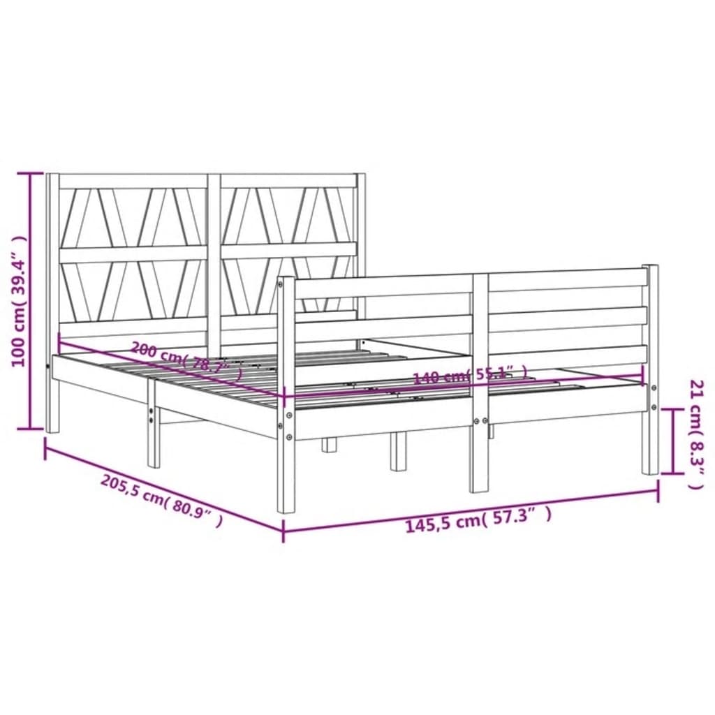- Gesamtabmessungen des Bettes: 205,5 x 145,5 x 100 cm (L x B x H)
