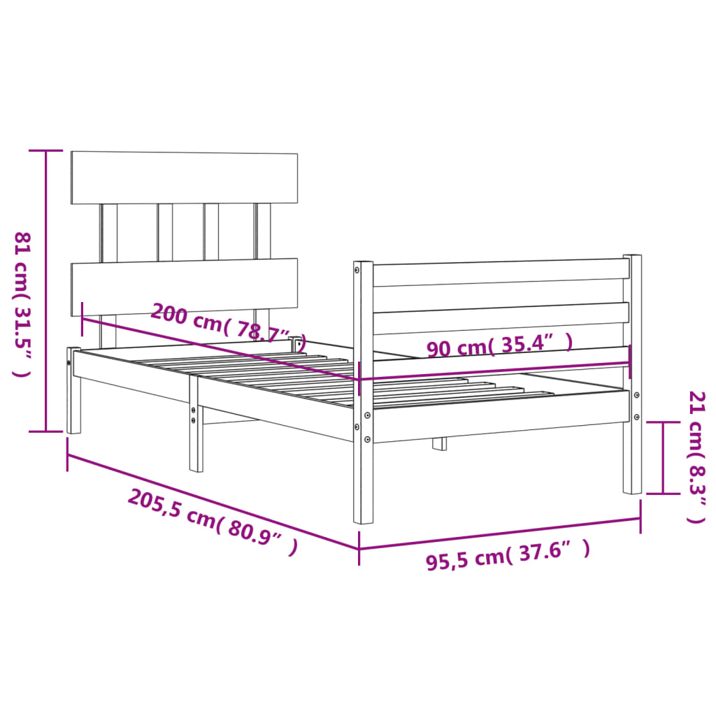 - Gesamtabmessungen des Bettes: 205,5 x 95,5 x 81 cm (L x B x H)