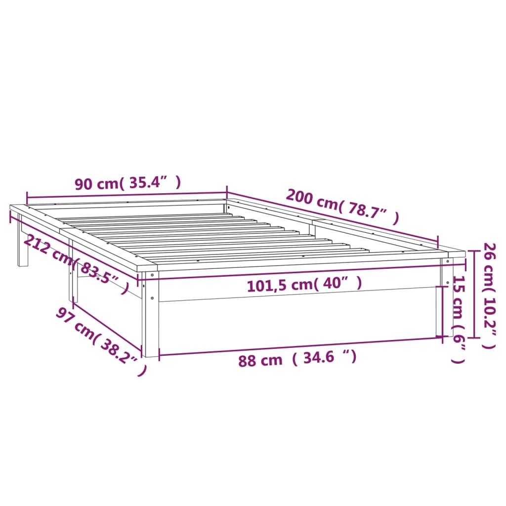 - Gesamtabmessungen: 212 x 101,5 x 26 cm (L x B x H)