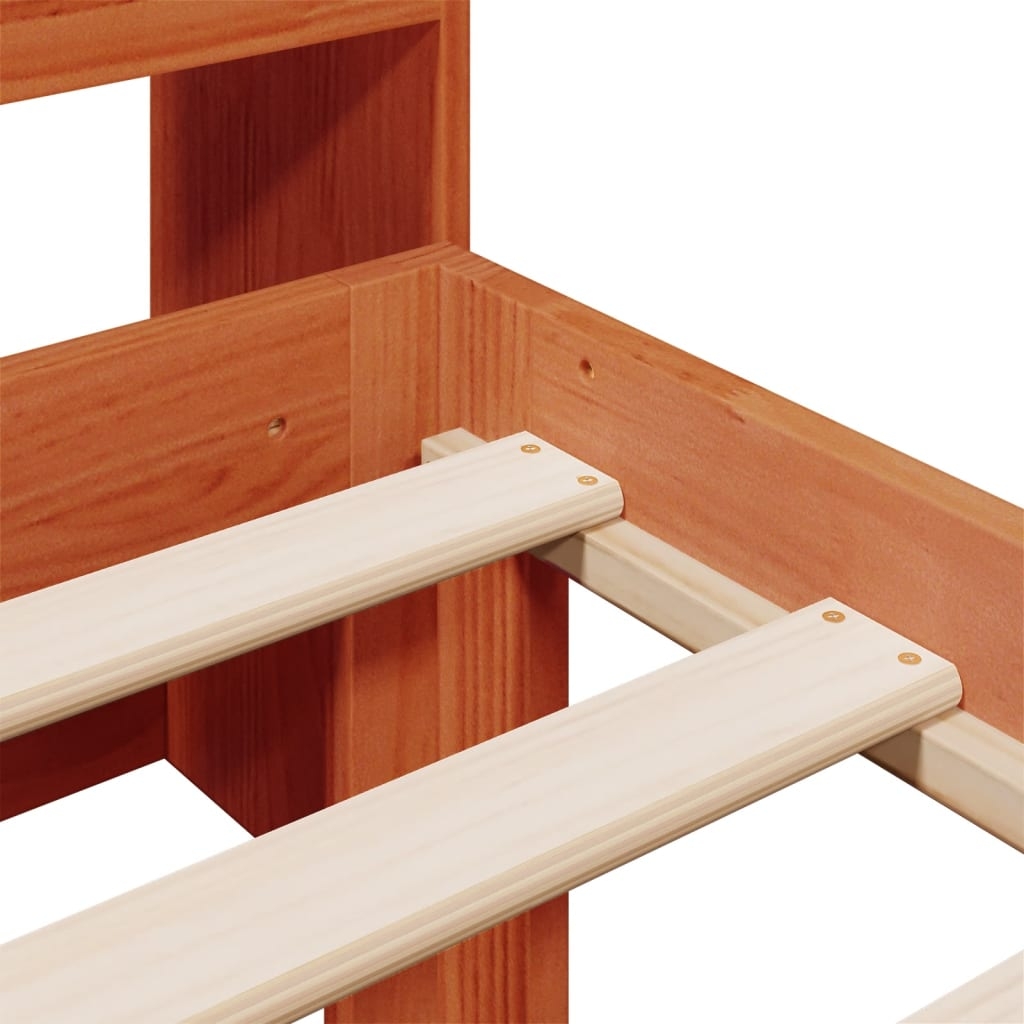 In diesem Bett mit Bücherregal schläft man besser und erholsamer! Das Massivholzbett ist eine willkommene Ergänzung für jedes Schlafzimmer. Stabiles und langlebiges Gestell: Massives Kiefernholz ist für seine Stärke und Haltbarkeit bekannt. Seine gerade Maserung und die charakteristischen Aststellen tragen zu seinem rustikalen Charme bei. Lattenrost für optimale Unterstützung: Der Bettrahmen ist mit einem Lattenrost ausgestattet, der deine Matratze stützt und atmungsaktiv hält. Viel Stauraum: Dieses Regal-Kopfteil bietet reichlich Stauraum, um Bücher, Dekoartikel und andere Gegenstände griffbereit aufzubewahren und auf diese Weise für Ordnung im Schlafzimmer zu sorgen. Platzsparend: Dieses Kopfteil bietet eine platzsparende Alternative zu üblichen Nachttischen. Es schafft zusätzlichen Stauraum im Schlafzimmer und ist eine ideale Wahl für kleine oder begrenzte Räume. Gut zu wissen:Bei diesem Bett ist keine Matratze im Lieferumfang enthalten. Wir bieten jedoch eine große Auswahl an Matratzen an. Du kannst in unserem Shop nach einer passenden Matratze suchen.