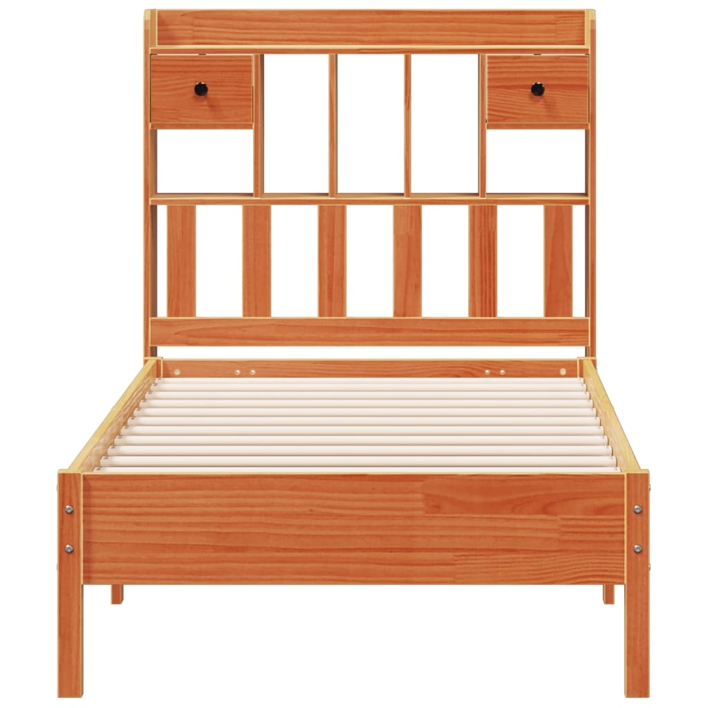 In diesem Bett mit Bücherregal schläft man besser und erholsamer! Das Massivholzbett ist eine willkommene Ergänzung für jedes Schlafzimmer. Stabiles und langlebiges Gestell: Massives Kiefernholz ist für seine Stärke und Haltbarkeit bekannt. Seine gerade Maserung und die charakteristischen Aststellen tragen zu seinem rustikalen Charme bei.Lattenrost für optimale Unterstützung: Der Bettrahmen ist mit einem Lattenrost ausgestattet, der deine Matratze stützt und atmungsaktiv hält.Viel Stauraum: Dieses Regal-Kopfteil bietet reichlich Stauraum, um Bücher, Dekoartikel und andere Gegenstände griffbereit aufzubewahren und auf diese Weise für Ordnung im Schlafzimmer zu sorgen.Platzsparend: Dieses Kopfteil bietet eine platzsparende Alternative zu üblichen Nachttischen. Es schafft zusätzlichen Stauraum im Schlafzimmer und ist eine ideale Wahl für kleine oder begrenzte Räume. Gut zu wissen:Bei diesem Bett ist keine Matratze im Lieferumfang enthalten. Wir bieten jedoch eine große Auswahl an Matratzen an. Du kannst in unserem Shop nach einer passenden Matratze suchen.