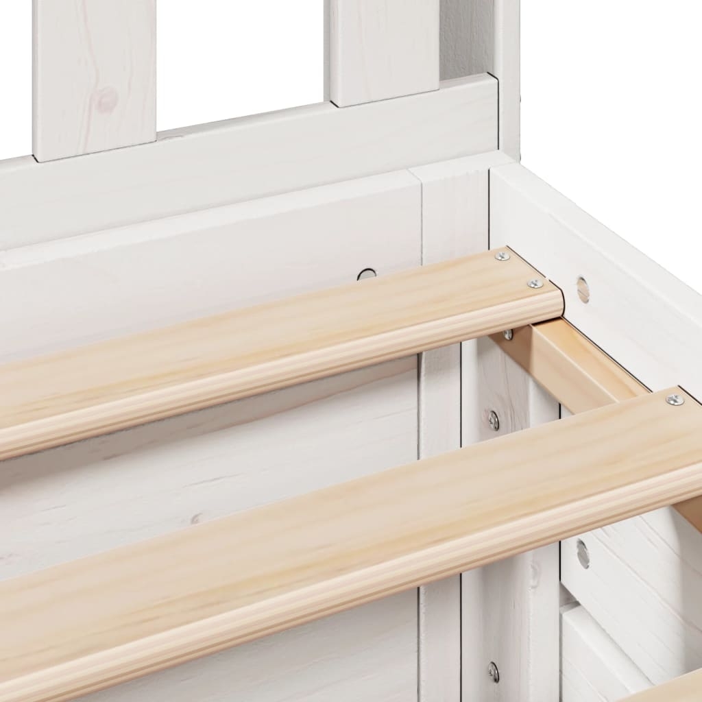 In diesem Bett mit Bücherregal schläft man besser und erholsamer! Das Massivholzbett ist eine willkommene Ergänzung für jedes Schlafzimmer. Stabiles und langlebiges Gestell: Massives Kiefernholz ist für seine Stärke und Haltbarkeit bekannt. Seine gerade Maserung und die charakteristischen Aststellen tragen zu seinem rustikalen Charme bei.Lattenrost für optimale Unterstützung: Der Bettrahmen ist mit einem Lattenrost ausgestattet, der deine Matratze stützt und atmungsaktiv hält.Viel Stauraum: Dieses Regal-Kopfteil bietet reichlich Stauraum, um Bücher, Dekoartikel und andere Gegenstände griffbereit aufzubewahren und auf diese Weise für Ordnung im Schlafzimmer zu sorgen.Platzsparend: Dieses Kopfteil bietet eine platzsparende Alternative zu üblichen Nachttischen. Es schafft zusätzlichen Stauraum im Schlafzimmer und ist eine ideale Wahl für kleine oder begrenzte Räume.Leichtgängig: Dank der vier Rollen lässt sich die Unterbettschublade mühelos hineinschieben und herausziehen. Gut zu wissen:Bei diesem Bett ist keine Matratze im Lieferumfang enthalten. Wir bieten jedoch eine große Auswahl an Matratzen an. Du kannst in unserem Shop nach einer passenden Matratze suchen.