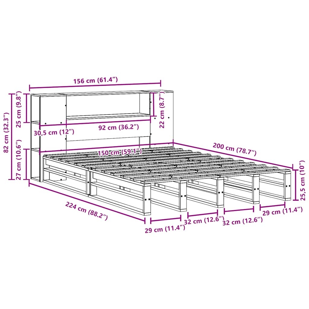 In diesem Bett mit Bücherregal schläft man besser und erholsamer! Das Massivholzbett ist eine willkommene Ergänzung für jedes Schlafzimmer. Stabiles und langlebiges Gestell: Massives Kiefernholz ist für seine Stärke und Haltbarkeit bekannt. Seine gerade Maserung und die charakteristischen Aststellen tragen zu seinem rustikalen Charme bei. Lattenrost für optimale Unterstützung: Der Bettrahmen ist mit einem Lattenrost ausgestattet, der deine Matratze stützt und atmungsaktiv hält. Viel Stauraum: Dieses Regal-Kopfteil bietet reichlich Stauraum, um Bücher, Dekoartikel und andere Gegenstände griffbereit aufzubewahren und auf diese Weise für Ordnung im Schlafzimmer zu sorgen. Praktisches Fußteil: Das Fußteil trägt nicht nur zur Gesamtstabilität des Bettrahmens bei und sorgt auch für eine sichere Schlafumgebung. Es hält die Matratze und das Bettzeug am Platz, wodurch ein ordentliches Erscheinungsbild erhalten bleibt. Platzsparend: Dieses Kopfteil bietet eine platzsparende Alternative zu üblichen Nachttischen. Es schafft zusätzlichen Stauraum im Schlafzimmer und ist eine ideale Wahl für kleine oder begrenzte Räume. Gut zu wissen:Bei diesem Bett ist keine Matratze im Lieferumfang enthalten. Wir bieten jedoch eine große Auswahl an Matratzen an. Du kannst in unserem Shop nach einer passenden Matratze suchen.