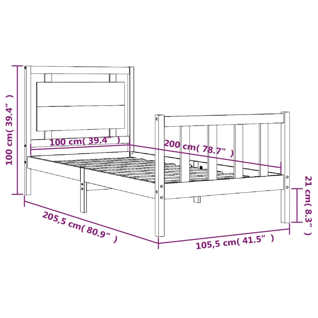 - Gesamtabmessungen des Bettes: 205,5 x 105,5 x 100 cm (L x B x H)
