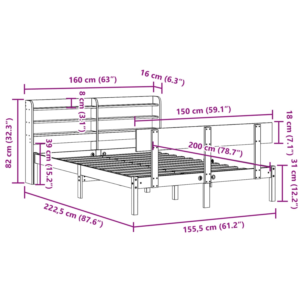 - Passende Matratzengröße: 150 x 200 cm (B x L) (Matratze nicht enthalten)