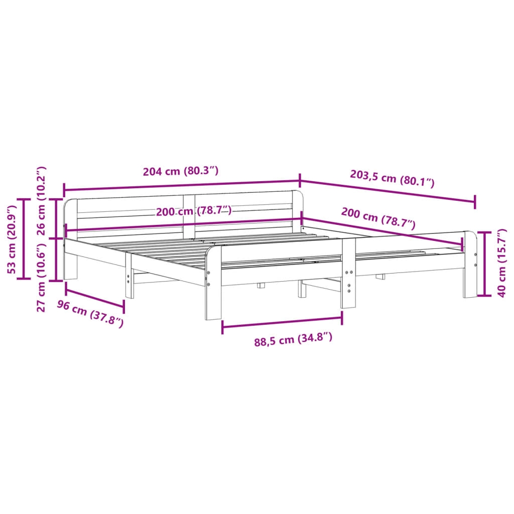 - Gesamtabmessungen Bett: 204 x 203,5 x 53 cm (L x B x H)