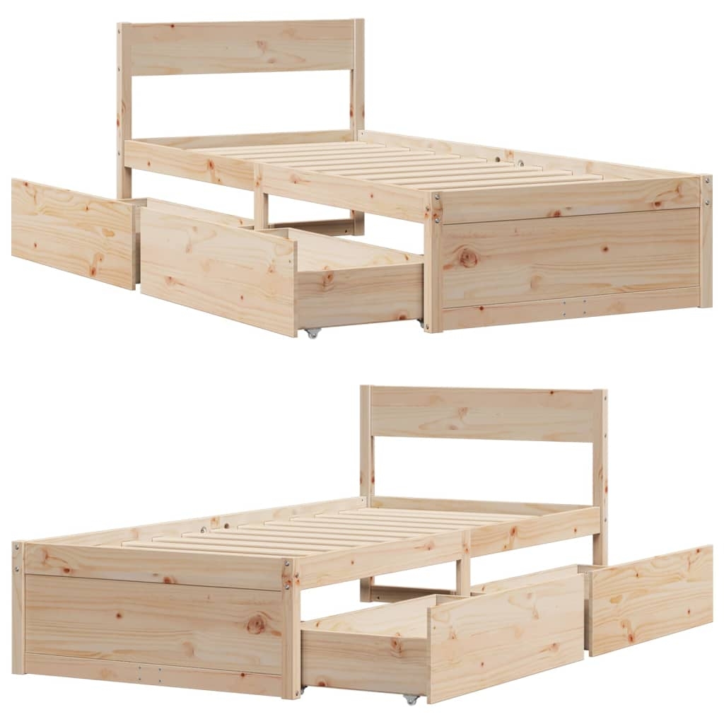 Verleihe deinem Schlafzimmer eine moderne Note mit diesem Bettgestell mit Schubladen! Es stellt eine praktische und dekorative Ergänzung zu deinem Wohnraum dar. Stabiles und langlebiges Gestell: Massives Kiefernholz ist für seine Stärke und Haltbarkeit bekannt. Seine gerade Maserung und die charakteristischen Aststellen tragen zu seinem rustikalen Charme bei.Sperrholzlatten: Die Sperrholzlatten sorgen für eine gute Gewichtsverteilung und auch dafür, dass die Matratze bei jeder Bewegung deines Körpers während des Schlafes an Ort und Stelle bleibt.Stauraum: Die mitgelieferten Bettschubladen bietet reichlich Stauraum zur Aufbewahrung wichtiger Sachen, um für Ordnung in Ihrem Zimmer zu sorgen.Vielseitiges Kopfteil: Dieses Bettgestell ist mit einem Kopfteil versehen, das als komfortable Rückenstütze beim Lesen oder Fernsehen und gleichzeitig als dekoratives Element dient. Gut zu wissen:Bei diesem Bett ist keine Matratze im Lieferumfang enthalten. Wir bieten jedoch eine große Auswahl an Matratzen an. Du kannst in unserem Shop nach einer passenden Matratze suchen.
