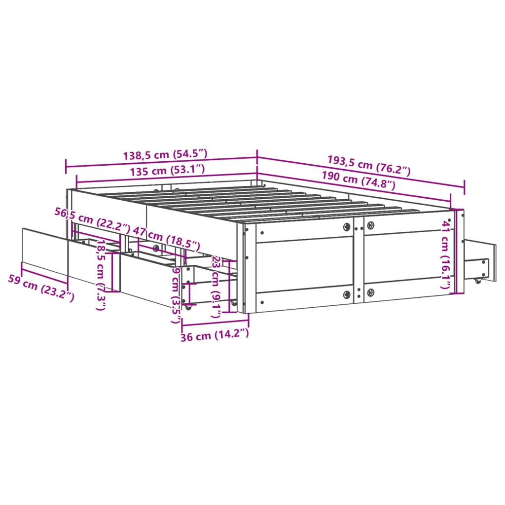 - Schubladen-Maße (jeweils): 59 x 36 x 18,5 cm (L x B x H)