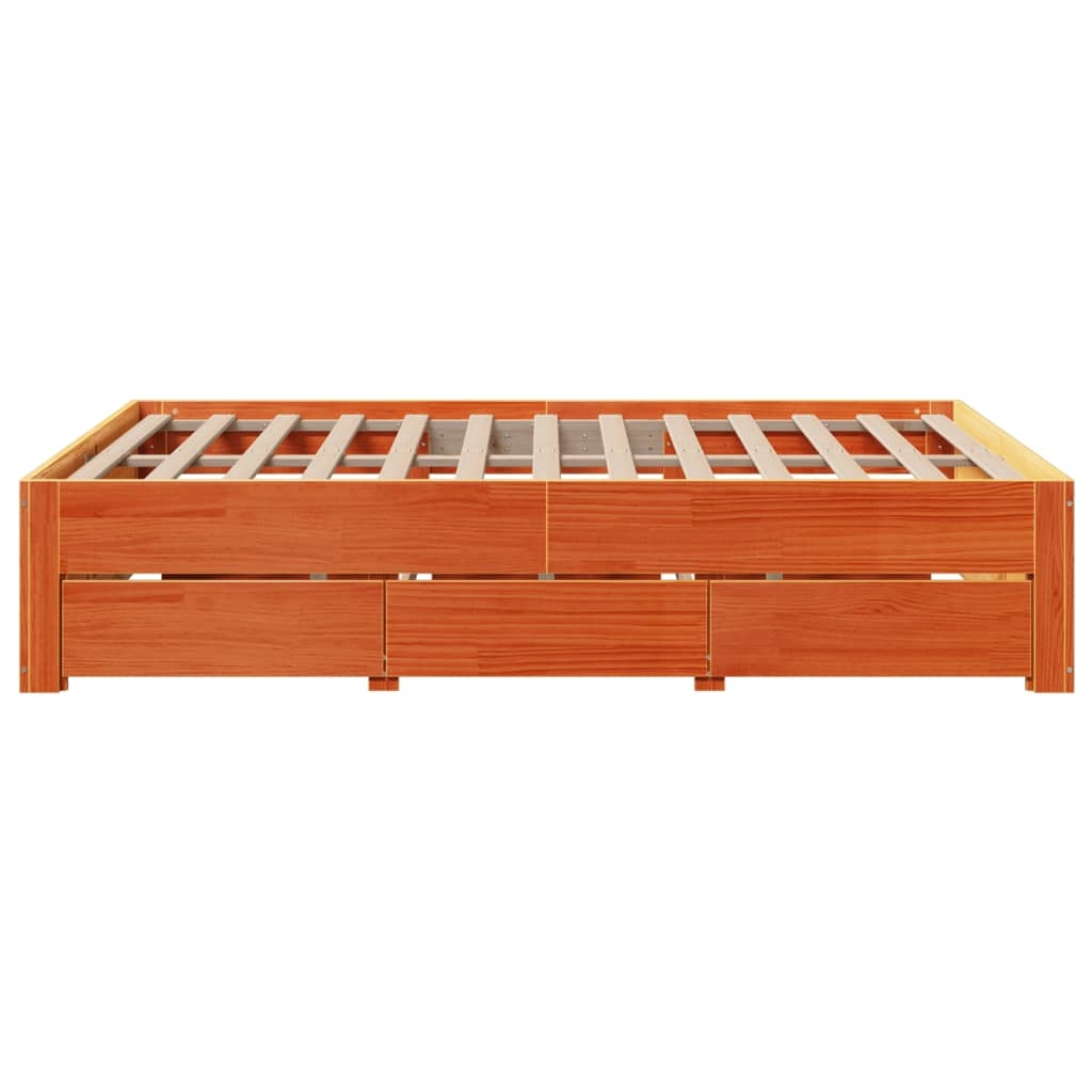 Mit diesem Bett wirst du einen besseren, erholsameren Schlaf genießen! Er ist eine einladende Ergänzung für jedes Schlafzimmer. Stabiles und langlebiges Gestell: Massives Kiefernholz ist für seine Stärke und Haltbarkeit bekannt. Seine gerade Maserung und die charakteristischen Aststellen tragen zu seinem rustikalen Charme bei.Lattenrost für optimale Unterstützung: Der Bettrahmen ist mit einem Lattenrost ausgestattet, der deine Matratze stützt und atmungsaktiv hält.Stabile und starke Bettfüße: Dieses Bett wird von stabilen Füßen getragen, die für Stabilität und sicheren Halt sorgen.Stauraum: Dieses Bettgestell verfügt über Schubladen, in denen du Bettzeug, Zeitschriften, Bücher, Spielzeuge und andere Kleinigkeiten gut organisiert aufbewahren kannst. Gut zu wissen:Bei diesem Bett ist keine Matratze im Lieferumfang enthalten. Wir bieten jedoch eine große Auswahl an Matratzen an. Du kannst in unserem Shop nach einer passenden Matratze suchen.