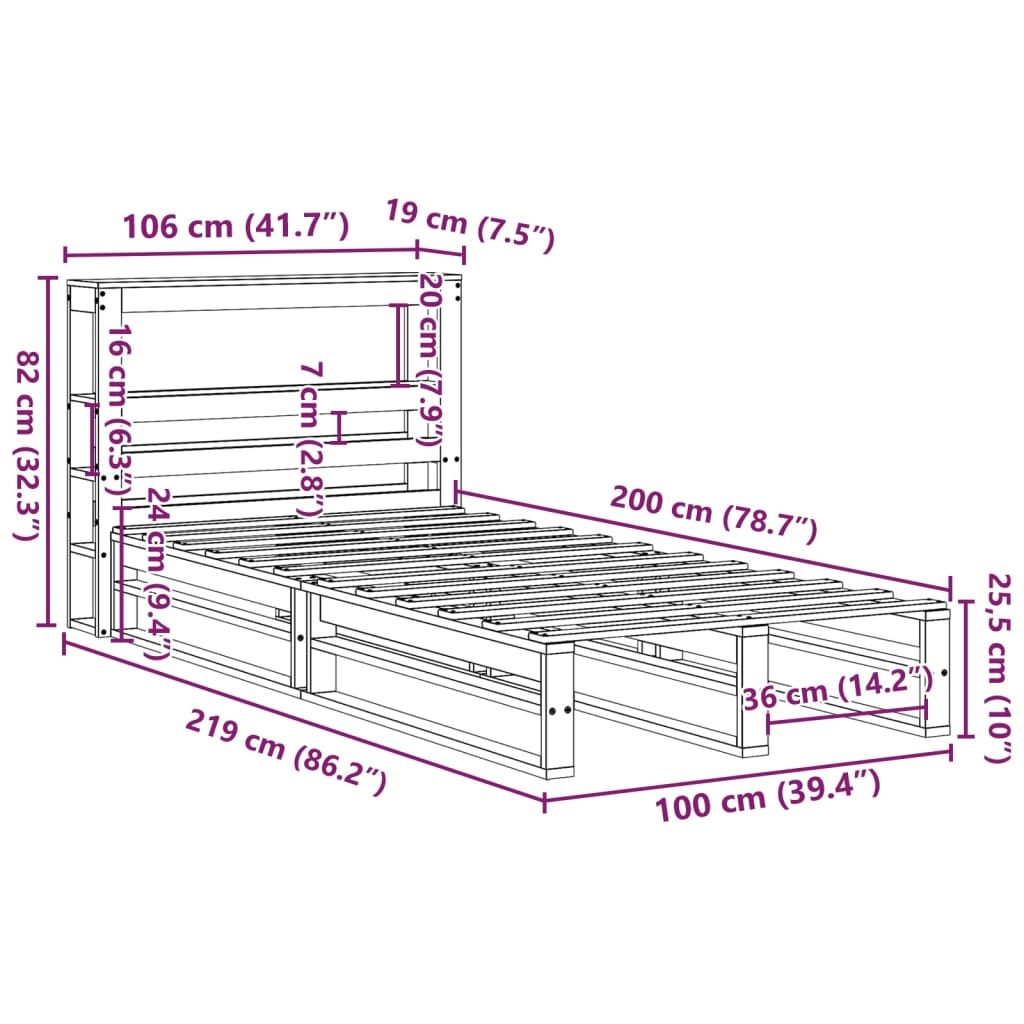 - Gesamtabmessungen Bett: 219 x 106 x 82 cm (L x B x H)