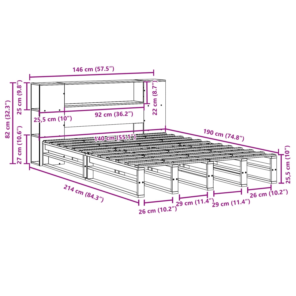 In diesem Bett mit Bücherregal schläft man besser und erholsamer! Das Massivholzbett ist eine willkommene Ergänzung für jedes Schlafzimmer. Stabiles und langlebiges Gestell: Massives Kiefernholz ist für seine Stärke und Haltbarkeit bekannt. Seine gerade Maserung und die charakteristischen Aststellen tragen zu seinem rustikalen Charme bei. Lattenrost für optimale Unterstützung: Der Bettrahmen ist mit einem Lattenrost ausgestattet, der deine Matratze stützt und atmungsaktiv hält. Viel Stauraum: Dieses Regal-Kopfteil bietet reichlich Stauraum, um Bücher, Dekoartikel und andere Gegenstände griffbereit aufzubewahren und auf diese Weise für Ordnung im Schlafzimmer zu sorgen. Praktisches Fußteil: Das Fußteil trägt nicht nur zur Gesamtstabilität des Bettrahmens bei und sorgt auch für eine sichere Schlafumgebung. Es hält die Matratze und das Bettzeug am Platz, wodurch ein ordentliches Erscheinungsbild erhalten bleibt. Platzsparend: Dieses Kopfteil bietet eine platzsparende Alternative zu üblichen Nachttischen. Es schafft zusätzlichen Stauraum im Schlafzimmer und ist eine ideale Wahl für kleine oder begrenzte Räume. Gut zu wissen:Bei diesem Bett ist keine Matratze im Lieferumfang enthalten. Wir bieten jedoch eine große Auswahl an Matratzen an. Du kannst in unserem Shop nach einer passenden Matratze suchen.