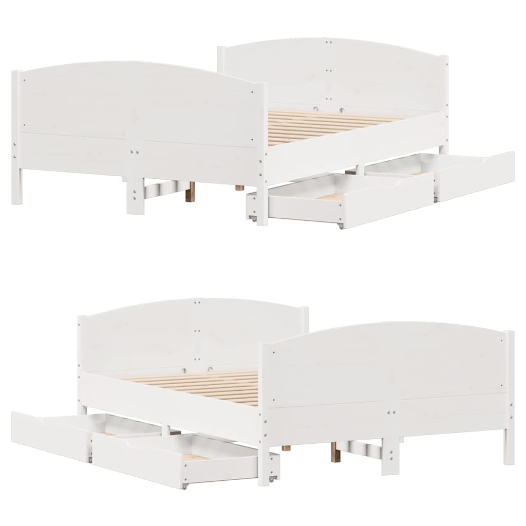 Mit diesem Bett wirst du einen besseren, erholsameren Schlaf genießen! Er ist eine einladende Ergänzung für jedes Schlafzimmer. Stabiles und langlebiges Gestell: Massives Kiefernholz ist für seine Stärke und Haltbarkeit bekannt. Seine gerade Maserung und die charakteristischen Aststellen tragen zu seinem rustikalen Charme bei.Lattenrost für optimale Unterstützung: Der Bettrahmen ist mit einem Lattenrost ausgestattet, der deine Matratze stützt und atmungsaktiv hält.Vielseitiges Kopfteil: Dieses Bettgestell ist mit einem Kopfteil versehen, das als komfortable Rückenstütze beim Lesen oder Fernsehen und gleichzeitig als dekoratives Element dient.Optimale Ausnutzung des Raumes: Dieser Bettrahmen verfügt über zwei Schubladen, in denen du Sachen wie zusätzliches Bettzeug, saisonale Kleidung und Spielzeug aufbewahren kannst.Leichtgängig: Dank der vier Rollen lässt sich die Unterbettschublade mühelos hineinschieben und herausziehen. Gut zu wissen:Bei diesem Bett ist keine Matratze im Lieferumfang enthalten. Wir bieten jedoch eine große Auswahl an Matratzen an. Du kannst in unserem Shop nach einer passenden Matratze suchen.