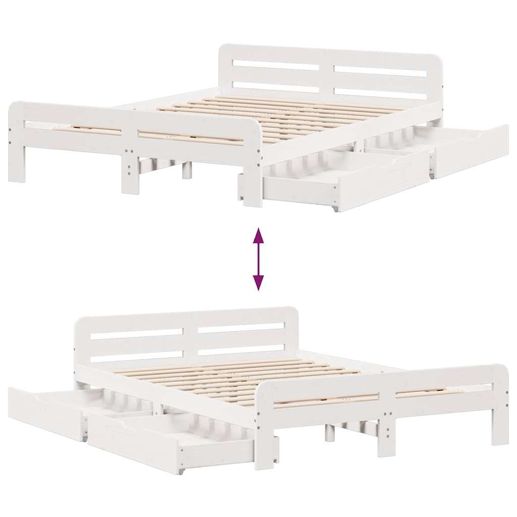 Mit diesem Bett wirst du einen besseren, erholsameren Schlaf genießen! Er ist eine einladende Ergänzung für jedes Schlafzimmer. Stabiles und langlebiges Gestell: Massives Kiefernholz ist für seine Stärke und Haltbarkeit bekannt. Seine gerade Maserung und die charakteristischen Aststellen tragen zu seinem rustikalen Charme bei.Lattenrost für optimale Unterstützung: Der Bettrahmen ist mit einem Lattenrost ausgestattet, der deine Matratze stützt und atmungsaktiv hält.Optimale Ausnutzung des Raumes: Dieses Bettgestell verfügt über zwei Schubladen, in denen du Sachen wie zusätzliches Bettzeug, saisonale Kleidung uvm. aufbewahren kannst.Vielseitiges Kopfteil: Dieses Bettgestell ist mit einem Kopfteil versehen, das als komfortable Rückenstütze beim Lesen oder Fernsehen und gleichzeitig als dekoratives Element dient.Leichtgängig: Dank der vier Rollen lässt sich die Unterbettschublade mühelos hineinschieben und herausziehen. Gut zu wissen:Bei diesem Bett ist keine Matratze im Lieferumfang enthalten. Wir bieten jedoch eine große Auswahl an Matratzen an. Du kannst in unserem Shop nach einer passenden Matratze suchen.