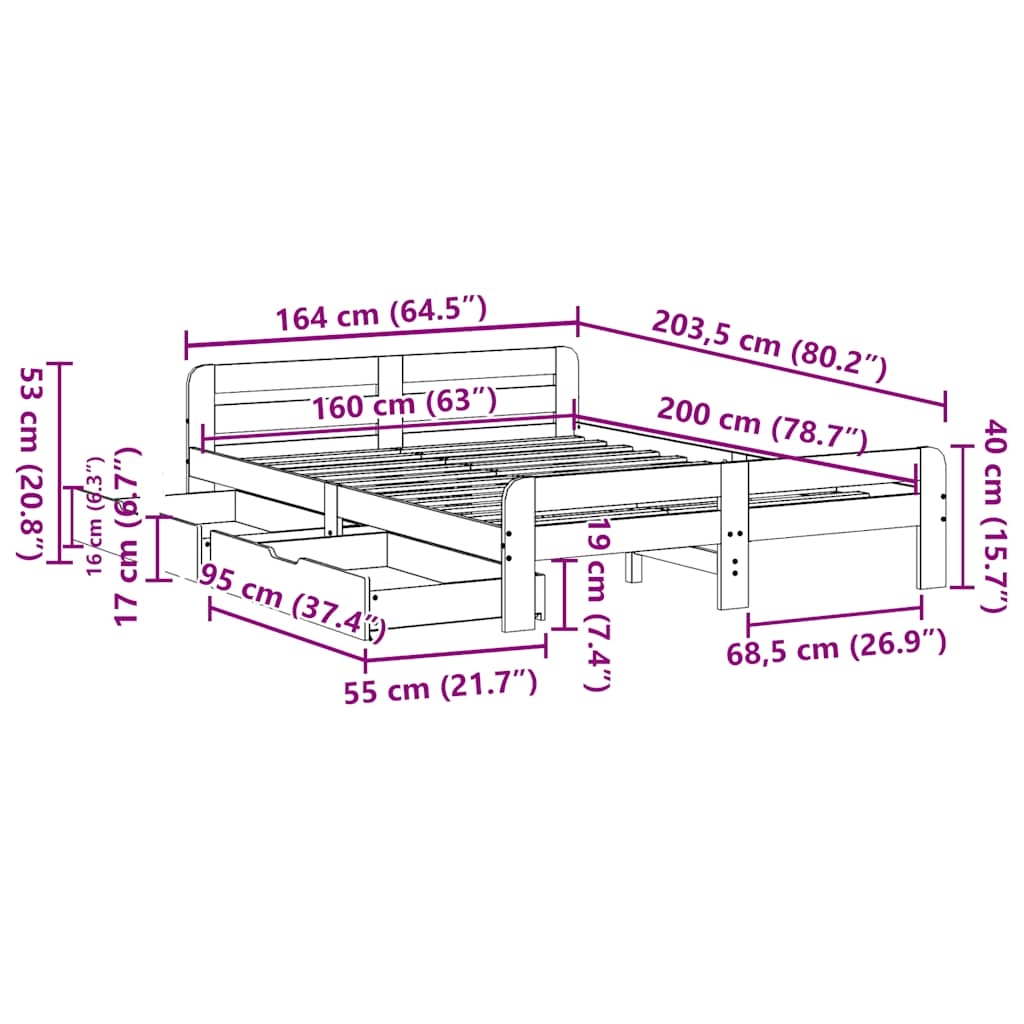 Mit diesem Bett wirst du einen besseren, erholsameren Schlaf genießen! Er ist eine einladende Ergänzung für jedes Schlafzimmer. Stabiles und langlebiges Gestell: Massives Kiefernholz ist für seine Stärke und Haltbarkeit bekannt. Seine gerade Maserung und die charakteristischen Aststellen tragen zu seinem rustikalen Charme bei.Lattenrost für optimale Unterstützung: Der Bettrahmen ist mit einem Lattenrost ausgestattet, der deine Matratze stützt und atmungsaktiv hält.Optimale Ausnutzung des Raumes: Dieses Bettgestell verfügt über zwei Schubladen, in denen du Sachen wie zusätzliches Bettzeug, saisonale Kleidung uvm. aufbewahren kannst.Vielseitiges Kopfteil: Dieses Bettgestell ist mit einem Kopfteil versehen, das als komfortable Rückenstütze beim Lesen oder Fernsehen und gleichzeitig als dekoratives Element dient.Leichtgängig: Dank der vier Rollen lässt sich die Unterbettschublade mühelos hineinschieben und herausziehen. Gut zu wissen:Bei diesem Bett ist keine Matratze im Lieferumfang enthalten. Wir bieten jedoch eine große Auswahl an Matratzen an. Du kannst in unserem Shop nach einer passenden Matratze suchen.
