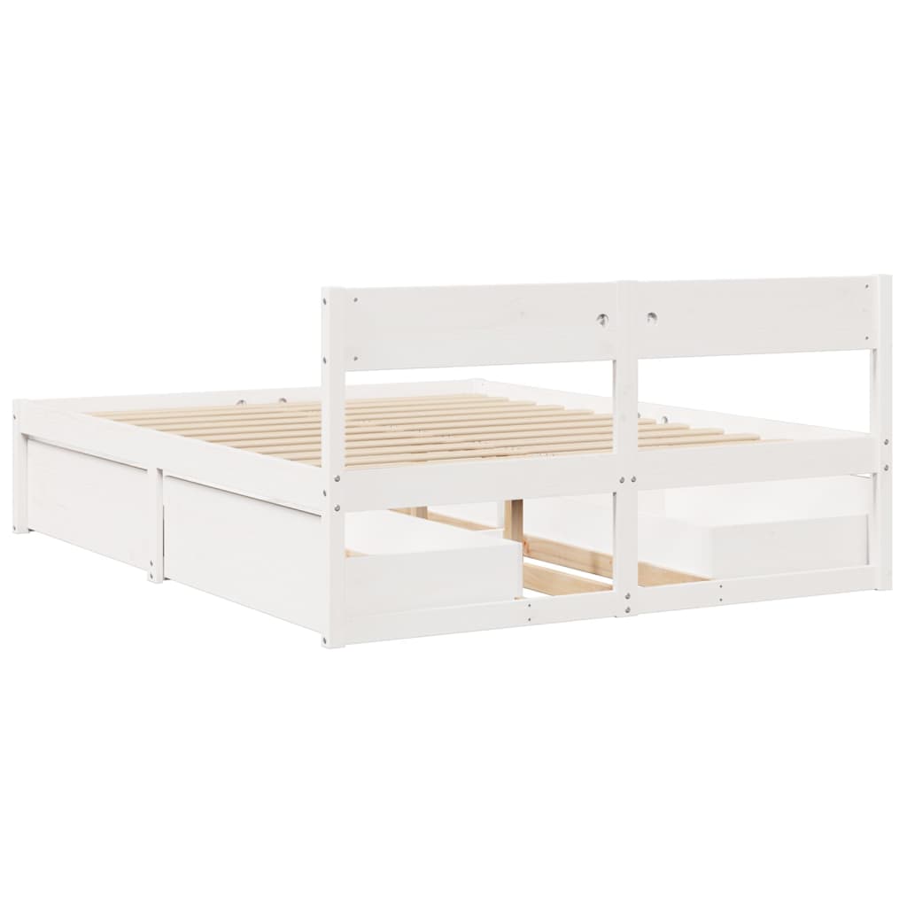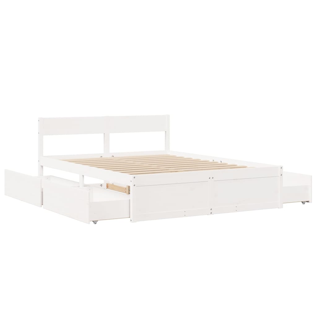 Verleihe deinem Schlafzimmer eine moderne Note mit diesem Bettgestell mit Schubladen! Es stellt eine praktische und dekorative Ergänzung zu deinem Wohnraum dar. Stabiles und langlebiges Gestell: Massives Kiefernholz ist für seine Stärke und Haltbarkeit bekannt. Seine gerade Maserung und die charakteristischen Aststellen tragen zu seinem rustikalen Charme bei.Sperrholzlatten: Die Sperrholzlatten sorgen für eine gute Gewichtsverteilung und auch dafür, dass die Matratze bei jeder Bewegung deines Körpers während des Schlafes an Ort und Stelle bleibt.Stauraum: Die mitgelieferten Bettschubladen bietet reichlich Stauraum zur Aufbewahrung wichtiger Sachen, um für Ordnung in Ihrem Zimmer zu sorgen.Vielseitiges Kopfteil: Dieses Bettgestell ist mit einem Kopfteil versehen, das als komfortable Rückenstütze beim Lesen oder Fernsehen und gleichzeitig als dekoratives Element dient. Gut zu wissen:Bei diesem Bett ist keine Matratze im Lieferumfang enthalten. Wir bieten jedoch eine große Auswahl an Matratzen an. Du kannst in unserem Shop nach einer passenden Matratze suchen.