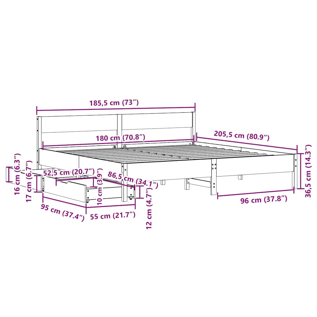 Mit diesem Bett wirst du einen besseren, erholsameren Schlaf genießen! Er ist eine einladende Ergänzung für jedes Schlafzimmer. Stabiles und langlebiges Gestell: Massives Kiefernholz ist für seine Stärke und Haltbarkeit bekannt. Seine gerade Maserung und die charakteristischen Aststellen tragen zu seinem rustikalen Charme bei.Lattenrost für optimale Unterstützung: Der Bettrahmen ist mit einem Lattenrost ausgestattet, der deine Matratze stützt und atmungsaktiv hält.Vielseitiges Kopfteil: Dieses Bettgestell ist mit einem Kopfteil versehen, das als komfortable Rückenstütze beim Lesen oder Fernsehen und gleichzeitig als dekoratives Element dient.Optimale Ausnutzung des Raumes: Dieser Bettrahmen verfügt über zwei Schubladen, in denen du Sachen wie zusätzliches Bettzeug, saisonale Kleidung und Spielzeug aufbewahren kannst.Leichtgängig: Dank der vier Rollen lässt sich die Unterbettschublade mühelos hineinschieben und herausziehen. Gut zu wissen:Bei diesem Bett ist keine Matratze im Lieferumfang enthalten. Wir bieten jedoch eine große Auswahl an Matratzen an. Du kannst in unserem Shop nach einer passenden Matratze suchen.