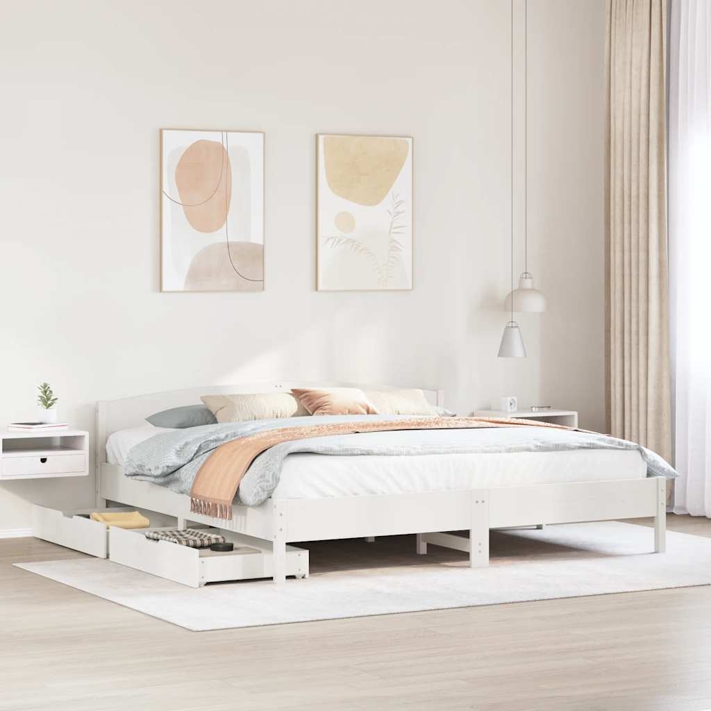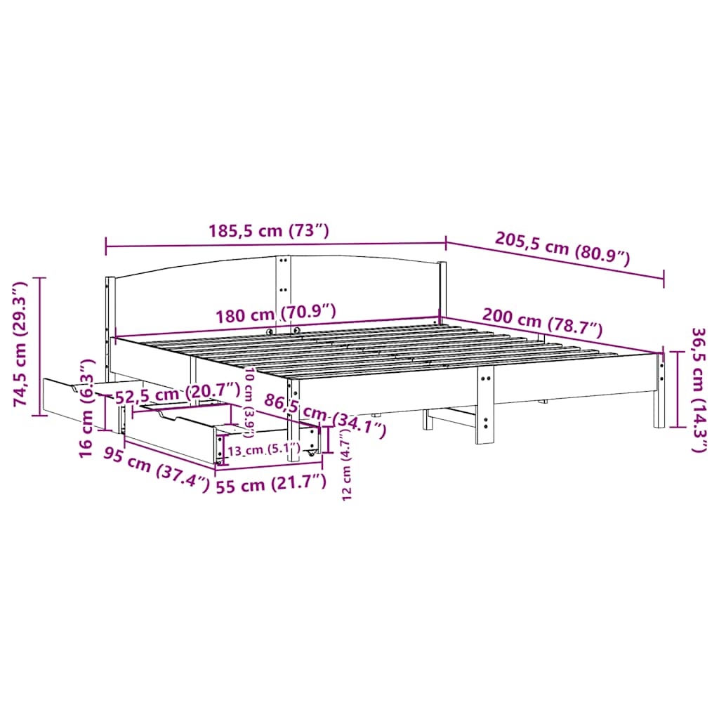 Mit diesem Bett wirst du einen besseren, erholsameren Schlaf genießen! Er ist eine einladende Ergänzung für jedes Schlafzimmer. Stabiles und langlebiges Gestell: Massives Kiefernholz ist für seine Stärke und Haltbarkeit bekannt. Seine gerade Maserung und die charakteristischen Aststellen tragen zu seinem rustikalen Charme bei.Lattenrost für optimale Unterstützung: Der Bettrahmen ist mit einem Lattenrost ausgestattet, der deine Matratze stützt und atmungsaktiv hält.Vielseitiges Kopfteil: Dieses Bettgestell ist mit einem Kopfteil versehen, das als komfortable Rückenstütze beim Lesen oder Fernsehen und gleichzeitig als dekoratives Element dient.Optimale Ausnutzung des Raumes: Dieser Bettrahmen verfügt über zwei Schubladen, in denen du Sachen wie zusätzliches Bettzeug, saisonale Kleidung und Spielzeug aufbewahren kannst.Leichtgängig: Dank der vier Rollen lässt sich die Unterbettschublade mühelos hineinschieben und herausziehen. Gut zu wissen:Bei diesem Bett ist keine Matratze im Lieferumfang enthalten. Wir bieten jedoch eine große Auswahl an Matratzen an. Du kannst in unserem Shop nach einer passenden Matratze suchen.