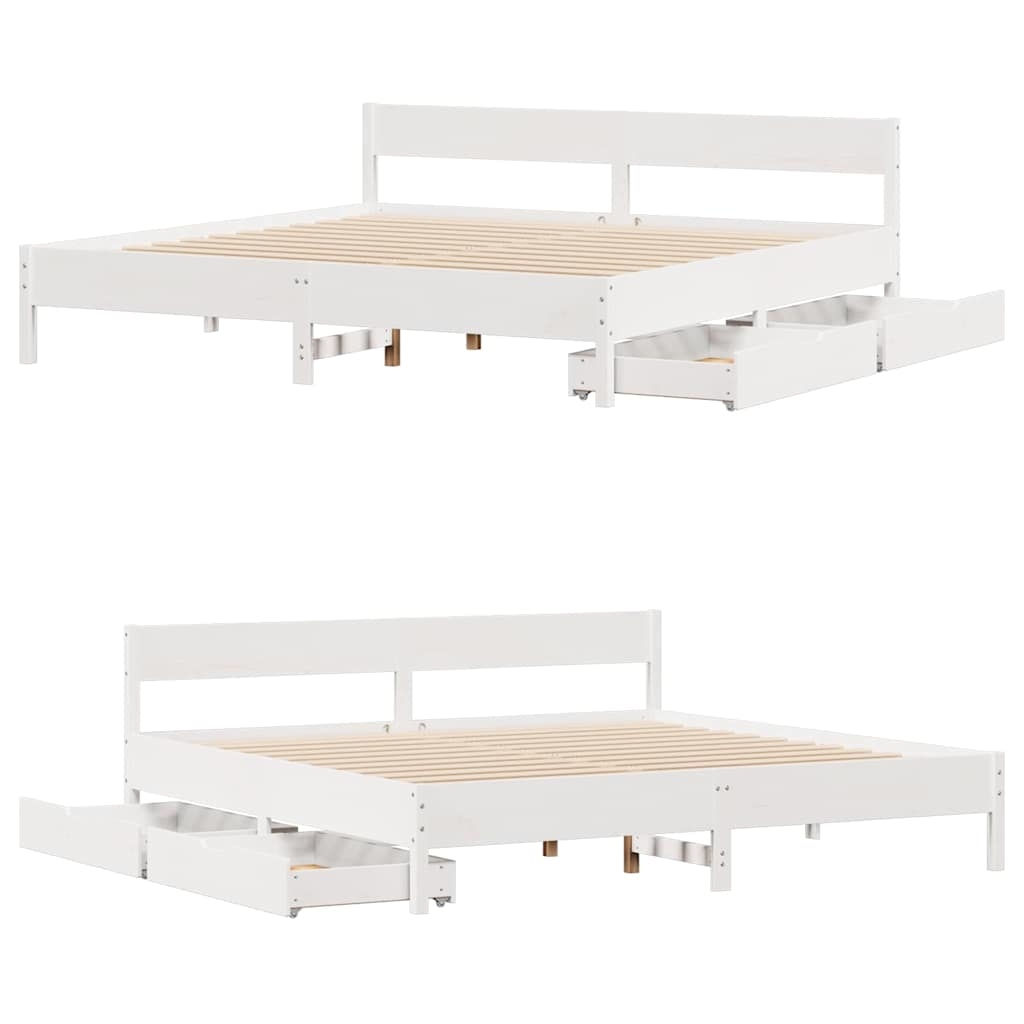 Mit diesem Bett wirst du einen besseren, erholsameren Schlaf genießen! Er ist eine einladende Ergänzung für jedes Schlafzimmer. Stabiles und langlebiges Gestell: Massives Kiefernholz ist für seine Stärke und Haltbarkeit bekannt. Seine gerade Maserung und die charakteristischen Aststellen tragen zu seinem rustikalen Charme bei.Lattenrost für optimale Unterstützung: Der Bettrahmen ist mit einem Lattenrost ausgestattet, der deine Matratze stützt und atmungsaktiv hält.Vielseitiges Kopfteil: Dieses Bettgestell ist mit einem Kopfteil versehen, das als komfortable Rückenstütze beim Lesen oder Fernsehen und gleichzeitig als dekoratives Element dient.Optimale Ausnutzung des Raumes: Dieser Bettrahmen verfügt über zwei Schubladen, in denen du Sachen wie zusätzliches Bettzeug, saisonale Kleidung und Spielzeug aufbewahren kannst.Leichtgängig: Dank der vier Rollen lässt sich die Unterbettschublade mühelos hineinschieben und herausziehen. Gut zu wissen:Bei diesem Bett ist keine Matratze im Lieferumfang enthalten. Wir bieten jedoch eine große Auswahl an Matratzen an. Du kannst in unserem Shop nach einer passenden Matratze suchen.