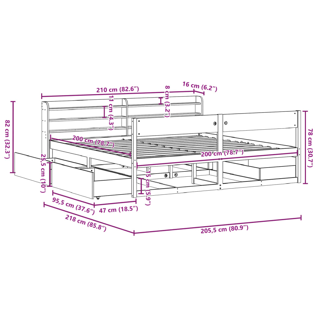 Mit diesem Bett wirst du einen besseren, erholsameren Schlaf genießen! Er ist eine einladende Ergänzung für jedes Schlafzimmer. Stabiles und langlebiges Gestell: Massives Kiefernholz ist für seine Stärke und Haltbarkeit bekannt. Seine gerade Maserung und die charakteristischen Aststellen tragen zu seinem rustikalen Charme bei.Lattenrost für optimale Unterstützung: Der Bettrahmen ist mit einem Lattenrost ausgestattet, der deine Matratze stützt und atmungsaktiv hält.Optimale Ausnutzung des Raums: Dieser Bettrahmen verfügt über vier Schubladen, in denen du Sachen wie zusätzliches Bettzeug, saisonale Kleidung und Spielzeug aufbewahren kannst.Reichlich Stauraum: Das elegante Kopfteil des Bettes verfügt über drei praktische Ablagen, die reichlich Stauraum bieten, um wichtige Sachen nachts griffbereit zu halten.Freistehend: Das freistehende Kopfteil lässt sich mühelos anbringen und bei Bedarf umstellen, ohne eine Befestigung an der Wand zu erfordern. Gut zu wissen:Bei diesem Bett ist keine Matratze im Lieferumfang enthalten. Wir bieten jedoch eine große Auswahl an Matratzen an. Du kannst in unserem Shop nach einer passenden Matratze suchen.