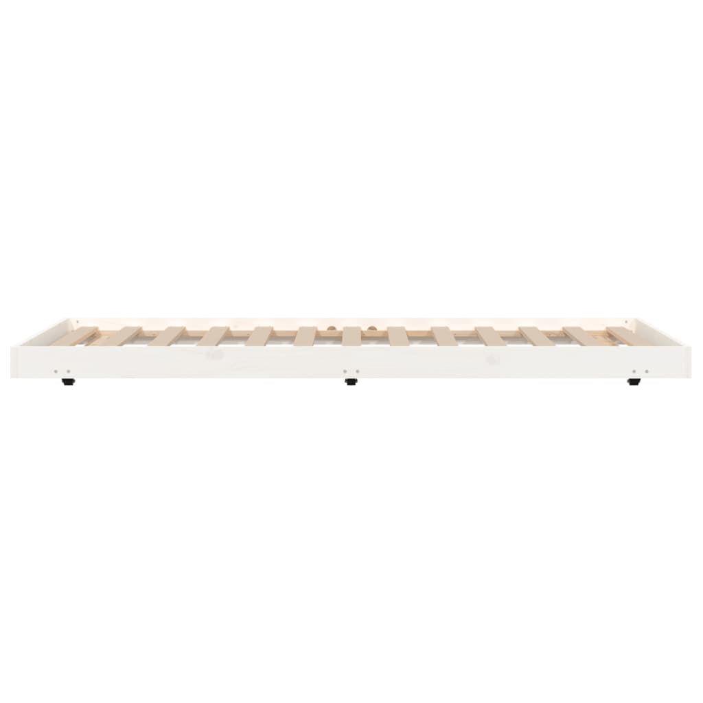 Mit seinem schlichten und zeitlosen Design ist dieses Bettgestell aus Holz eine praktische und dekorative Ergänzung zu deinem Schlafzimmer. Massives Kiefernholz: Massives Kiefernholz ist ein wunderschönes Naturmaterial. Kiefernholz weist eine gerade Maserung auf und die Aststellen verleihen dem Material seine charakteristische, rustikale Optik.Stabil: Der Holzrahmen verleiht dem Bett Robustheit und Stabilität.Robuste Latten: Die Sperrholzlatten sorgen für eine gute Gewichtsverteilung und auch dafür, dass die Matratze bei jeder Bewegung Ihres Körpers während des Schlafes an Ort und Stelle bleibt.Praktische Rollen: Dank der Rollen lässt sich das Bettgestell mühelos umher verschieben, um Übernachtungsgästen einen bequemen Schlafplatz zu bieten. Hinweis:Die Lieferung umfasst nur einen Bettrahmen. Die Matratze ist nicht im Lieferumfang enthalten. Die passenden Matratzen finden Sie in unserem Shop.Dieser Bettrahmen ist für eine Matratze mit den Maßen 75 x 190 cm geeignet.Jedes Produkt wird mit einer Montageanleitung in der Verpackung für einen einfachen Zusammenbau geliefert.
