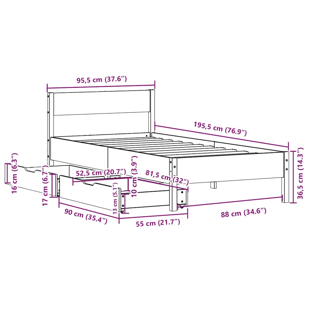 Mit diesem Bett wirst du einen besseren, erholsameren Schlaf genießen! Er ist eine einladende Ergänzung für jedes Schlafzimmer. Stabiles und langlebiges Gestell: Massives Kiefernholz ist für seine Stärke und Haltbarkeit bekannt. Seine gerade Maserung und die charakteristischen Aststellen tragen zu seinem rustikalen Charme bei.Lattenrost für optimale Unterstützung: Der Bettrahmen ist mit einem Lattenrost ausgestattet, der deine Matratze stützt und atmungsaktiv hält.Vielseitiges Kopfteil: Dieses Bettgestell ist mit einem Kopfteil versehen, das als komfortable Rückenstütze beim Lesen oder Fernsehen und gleichzeitig als dekoratives Element dient.Optimale Ausnutzung des Raumes: Dieser Bettrahmen verfügt über zwei Schubladen, in denen du Sachen wie zusätzliches Bettzeug, saisonale Kleidung und Spielzeug aufbewahren kannst.Leichtgängig: Dank der vier Rollen lässt sich die Unterbettschublade mühelos hineinschieben und herausziehen. Gut zu wissen:Bei diesem Bett ist keine Matratze im Lieferumfang enthalten. Wir bieten jedoch eine große Auswahl an Matratzen an. Du kannst in unserem Shop nach einer passenden Matratze suchen.