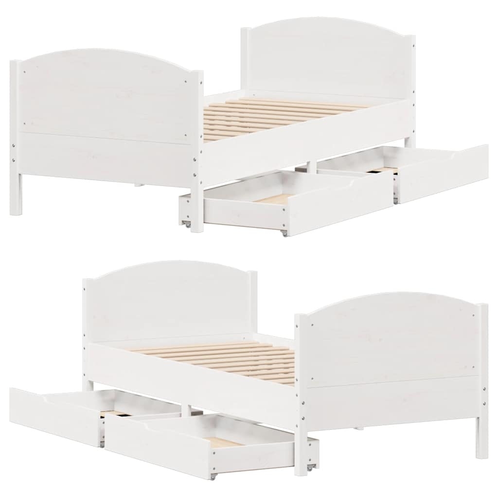 Mit diesem Bett wirst du einen besseren, erholsameren Schlaf genießen! Er ist eine einladende Ergänzung für jedes Schlafzimmer. Stabiles und langlebiges Gestell: Massives Kiefernholz ist für seine Stärke und Haltbarkeit bekannt. Seine gerade Maserung und die charakteristischen Aststellen tragen zu seinem rustikalen Charme bei.Lattenrost für optimale Unterstützung: Der Bettrahmen ist mit einem Lattenrost ausgestattet, der deine Matratze stützt und atmungsaktiv hält.Vielseitiges Kopfteil: Dieses Bettgestell ist mit einem Kopfteil versehen, das als komfortable Rückenstütze beim Lesen oder Fernsehen und gleichzeitig als dekoratives Element dient.Optimale Ausnutzung des Raumes: Dieser Bettrahmen verfügt über zwei Schubladen, in denen du Sachen wie zusätzliches Bettzeug, saisonale Kleidung und Spielzeug aufbewahren kannst.Leichtgängig: Dank der vier Rollen lässt sich die Unterbettschublade mühelos hineinschieben und herausziehen. Gut zu wissen:Bei diesem Bett ist keine Matratze im Lieferumfang enthalten. Wir bieten jedoch eine große Auswahl an Matratzen an. Du kannst in unserem Shop nach einer passenden Matratze suchen.