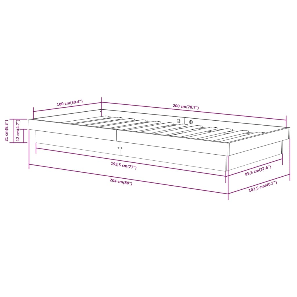 - Gesamtabmessungen: 204 x 103,5 x 21 cm (L x B x H)