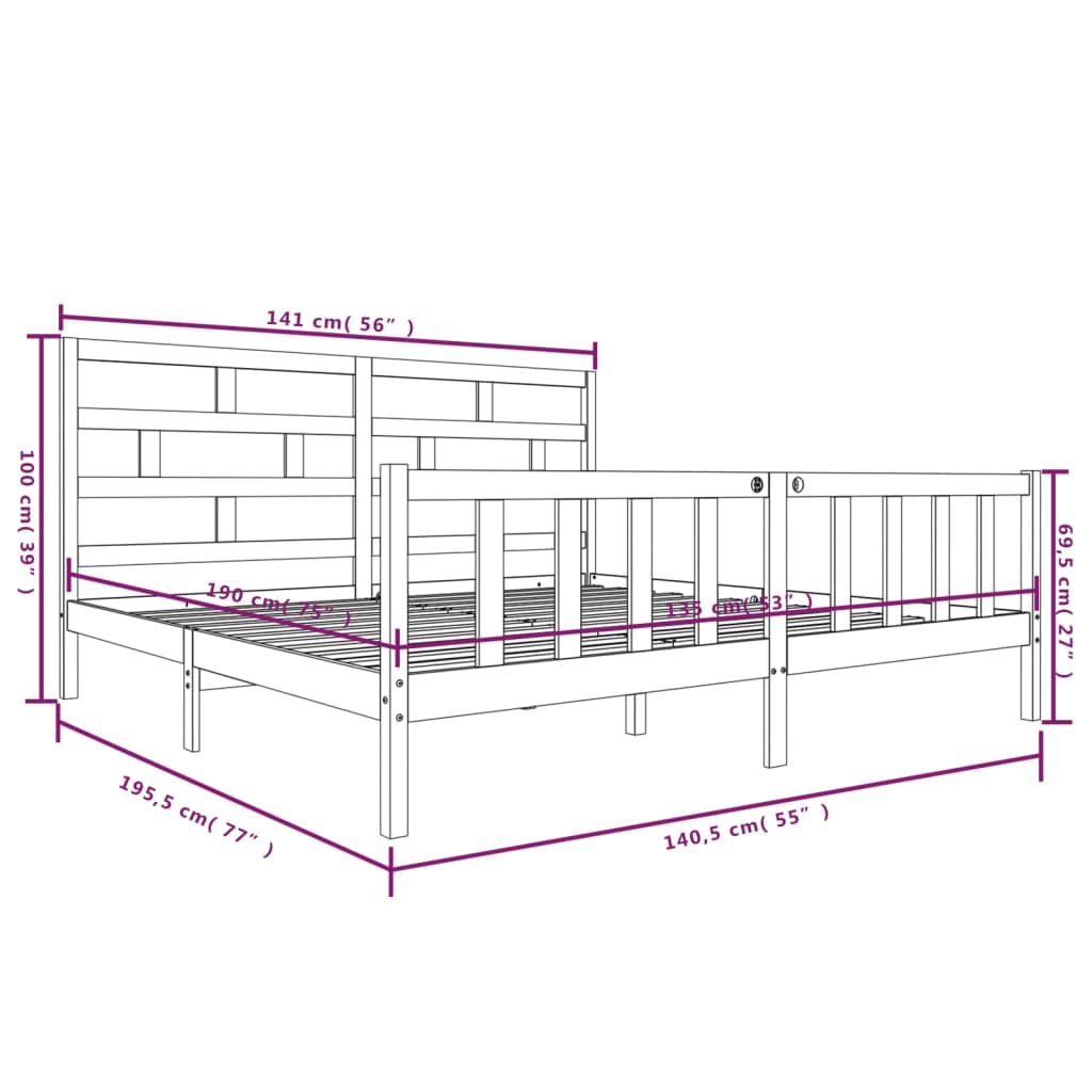 - Abmessungen des Bettgestells: 195,5 x 140,5 x 69,5 cm (L x B x H)