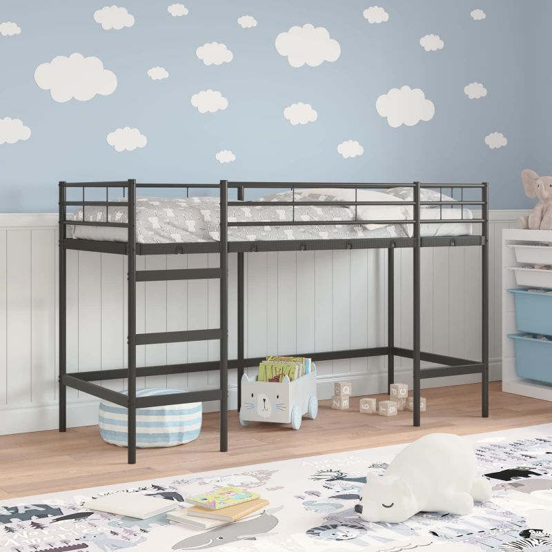 Das Kinder-Loftbett ist die ideale Kombination aus Stil und Praktikabilität fürs Kinderzimmer. Es hat klare Linien und kommt ohne unnötigen Schnickschnack aus. Die elegante, pulverbeschichtete Metallkonstruktion sorgt für einen stabilen Schlafplatz, während das kompakte Design eine smarte Möglichkeit zum Platzsparen bietet. Perfekt für kleine Abenteurer, bietet dieses Loftbett eine gemütliche Schlafstätte über einem geräumigen Bereich, den man als Arbeitsplatz oder Spielecke nutzen kann. Mit seiner glatten, matten Oberfläche schafft es eine coole Atmosphäre und wertet jedes Zimmer auf. Metallkonstruktion: Der Bettrahmen aus Metall sorgt für Stärke und Stabilität. Die pulverbeschichtete Oberfläche sieht nicht nur gut aus, sondern schützt auch vor Kratzern und Abnutzungen und garantiert hohe Langlebigkeit selbst in lebhaften Kinderzimmern. Platzersparnis: Das Loftbett nutzt den vertikalen Raum optimal und schafft viel Platz darunter. Ideal für kleine Schlafzimmer, bleibt der Boden frei für zusätzliche Möbel oder einen Spielbereich, ohne den Schlafkomfort zu beeinträchtigen. Sicher und stabil: Mit einem robusten Lattenrahmen aus stabilem Metall bietet das Etagenbett Sicherheit und Stabilität. Feste Rahmen sind zwar kostengünstig, bieten aber nur begrenzte Flexibilität und sind perfekt, um die Struktur bei aktivem Gebrauch zu wahren. Moderner Stil: Das schlichte, mattschwarze Design fügt sich nahtlos in moderne Dekore ein. Es fühlt sich angenehm an und hat eine rechteckige Form, die einen zeitgenössischen, minimalistischen Stil bringt, der zu jedem Schlafzimmer passt. Pflege und Wartung: Der Pflegeaufwand ist gering, da der Rahmen sich mit einem feuchten Tuch einfach reinigen lässt, um seine Eleganz zu bewahren. Vermeide es, schwere Gegenstände über die Oberfläche zu ziehen, um das feine Finish zu erhalten und sicherzustellen, dass es ein fester Bestandteil im Kinderzimmer bleibt.