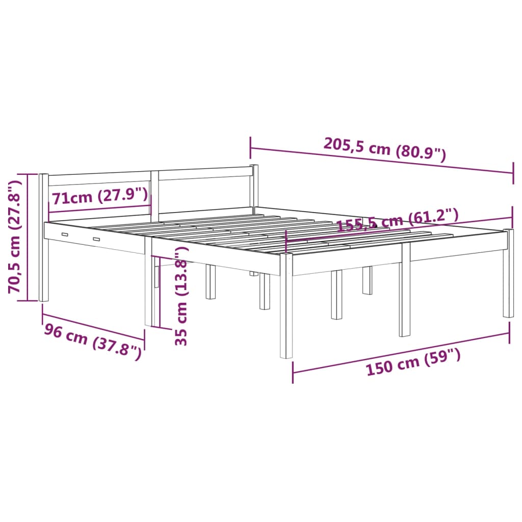 Gestalte dein Schlafzimmer modern mit diesem Seniorenbett aus Massivholz! Es ist eine praktische und dekorative Bereicherung für dein Interieur. Massives Kiefernholz: Massives Kiefernholz ist ein wunderschönes Naturmaterial. Kiefernholz weist eine gerade Maserung auf und die Aststellen verleihen dem Material seine charakteristische, rustikale Optik.Seniorengerecht: Dank einer Sitzhöhe von 45 cm können Senioren leicht aus dem Bett steigen und sich in das Bett legen.Zusätzlicher Stauraum: Unter diesem hohen Bett gibt es zusätzlichen Stauraum für die Aufbewahrung von Kleidung, Spielzeug oder Bettdecken.Robuste Latten: Die Sperrholzlatten sorgen für eine gute Gewichtsverteilung und auch dafür, dass die Matratze bei jeder Bewegung Ihres Körpers während des Schlafes an Ort und Stelle bleibt.Komfortables Kopfteil: Am klassischen Kopfteil können Sie sich beim Lesen oder Fernsehen bequem zurücklehnen und entspannen. Hinweis:Die Lieferung umfasst nur einen Bettrahmen. Die Matratze ist nicht im Lieferumfang enthalten. Die passenden Matratzen finden Sie in unserem Shop.Dieser Bettrahmen ist für eine Matratze von 150 x 200 cm (5FT King) geeignet.