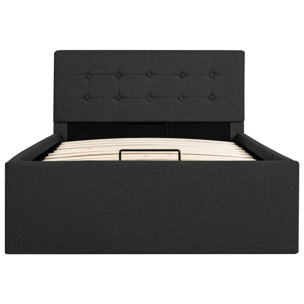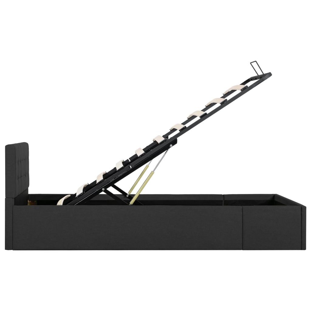 Verleihen Sie Ihrem Schlafzimmer mit diesem hydraulischen Bettgestell aus Stoff sofort ein beeindruckendes und modernes Aussehen! Dieses Einzelbett zeichnet sich durch ein schlichtes und zugleich stilvolles Design sowie einer soliden Konstruktion aus, da es aus starkem und robustem MDF gefertigt ist. Dieses Polsterbett verwandelt den ungenutzten Raum unter der Matratze in einen Stauraum mit viel Platz zur Aufbewahrung von Kleidung, Laken, Decken usw. Der hydraulische Gashebemechanismus macht das Anheben der Matratze zum Kinderspiel. Der Lattenrost steht nach dem Anheben aufrecht, sodass Sie beide Hände frei haben, um darunter liegende Gegenstände zu entfernen oder zu verstauen. Der pulverbeschichtete Stahlrahmen und die Sperrholzlatten tragen zur Robustheit und Langlebigkeit des Bettes bei. Das mit strapazierfähigem Stoff gepolsterte Bett wirkt einladend und ist pflegeleicht. Dieser Artikel ist leicht zu montieren. Dieses Schlafzimmermöbel ist für eine Matratze von 90×200 cm geeignet. Bitte beachten Sie, dass im Lieferumfang nur das Bettgestell enthalten ist. Eine Matratze ist nicht im Lieferumfang enthalten. In unserem Shop finden Sie die passenden Matratzen.