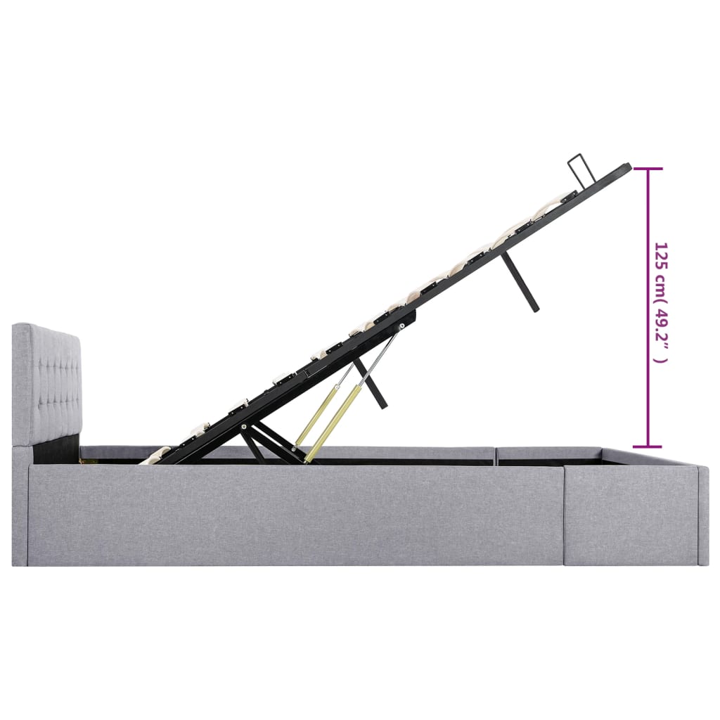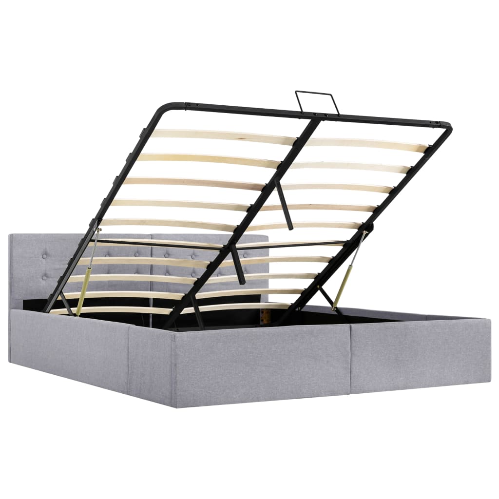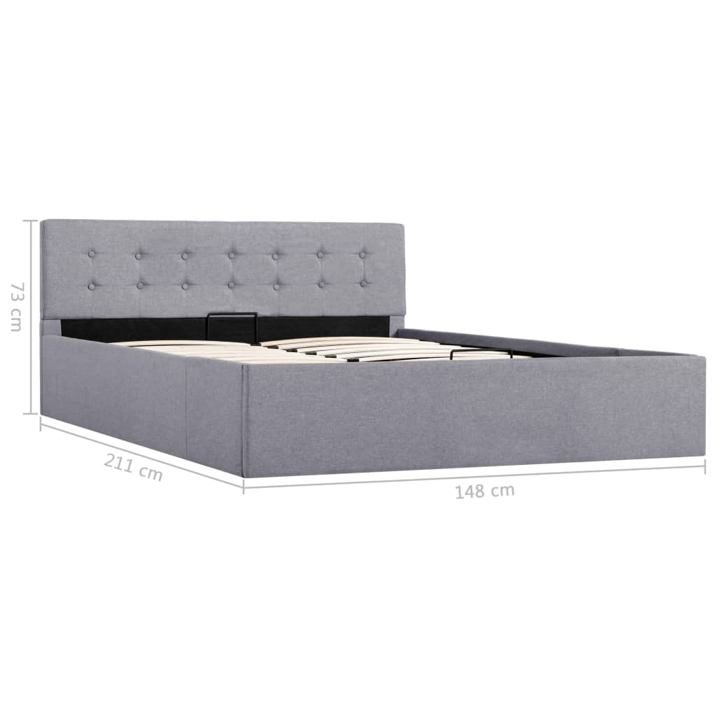Verleihen Sie Ihrem Schlafzimmer mit diesem hydraulischen Bettrahmen aus Stoff sofort ein beeindruckendes und modernes Aussehen! Dieses Doppelbett zeichnet sich durch ein einfaches und zugleich stilvolles Design sowie einer soliden Konstruktion aus, da es aus starkem und robustem MDF gefertigt ist. Dieses Polsterbett verwandelt den ungenutzten Raum unter der Matratze in einen Stauraum mit viel Platz zur Aufbewahrung von Kleidung, Laken, Decken usw. Der hydraulische Gashebemechanismus macht das Anheben der Matratze zum Kinderspiel. Der Lattenrost steht nach dem Anheben aufrecht, sodass Sie beide Hände frei haben, um darunter liegende Gegenstände zu entfernen oder zu verstauen. Der pulverbeschichtete Stahlrahmen und die Sperrholzlatten tragen zur Robustheit und Langlebigkeit des Bettes bei. Das mit strapazierfähigem Stoff gepolsterte Bett wirkt einladend und ist pflegeleicht. Dieser Artikel ist leicht zu montieren. Dieses Schlafzimmermöbel ist für eine Matratze von 140×200 cm vorgesehen. Bitte beachten Sie, dass im Lieferumfang nur das Bettgestell enthalten ist. Eine Matratze ist nicht im Lieferumfang enthalten. In unserem Shop finden Sie die passenden Matratzen.
