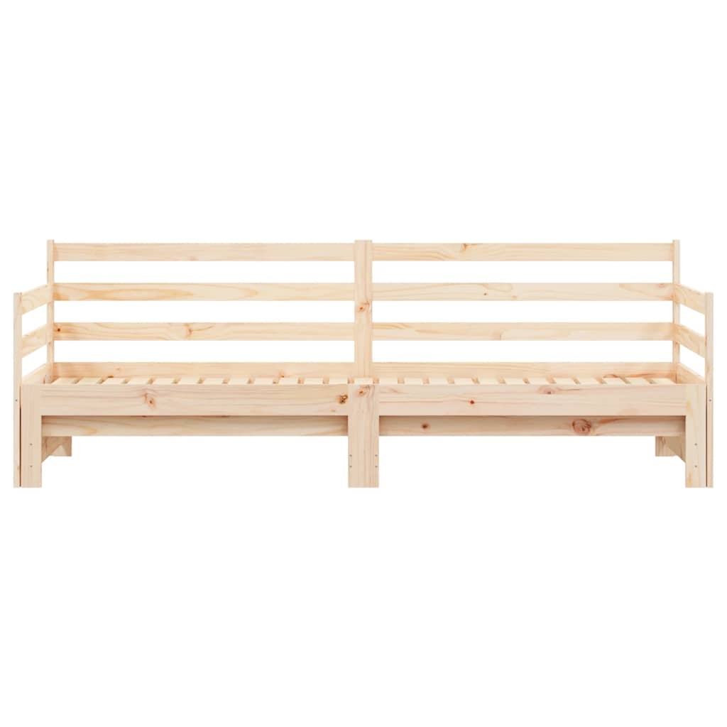 Dieses ausziehbare 2-in-1-Tagesbett, das sowohl als Sofa als auch als Bett dient, ist eine praktische und auffällige Ergänzung zu deinem Wohn- oder Schlafzimmer. Massives Kiefernholz: Massives Kiefernholz ist ein wunderschönes Naturmaterial. Kiefernholz weist eine gerade Maserung auf und die Aststellen verleihen dem Material seine charakteristische, rustikale Optik. Aus massivem Kiefernholz gefertigt, ist dieses Gästebett stabil und langlebig.Vielseitiges Tagesbett: Das Schlafsofa fungiert tagsüber als Sofa und lässt sich nachts durch Ausziehen des Rollkastens leicht in ein Doppelbett verwandeln - eine praktische Lösung, um Gästen einen bequemen Schlafplatz zu bieten und den Platz zu maximieren.Zusätzlicher Stauraum: Unter dem Tagesbett gibt es zusätzlichen Platz für Schubladen oder Aufbewahrungsboxen, um Kleidung, Socken, Spielzeug, Kissen usw. ordentlich zu verstauen. Gut zu wissen:Die Lieferung beinhaltet nur einen Bettrahmen. Die Matratzen sind nicht enthalten. In unserem Shop findest du auch passende Matratzen.